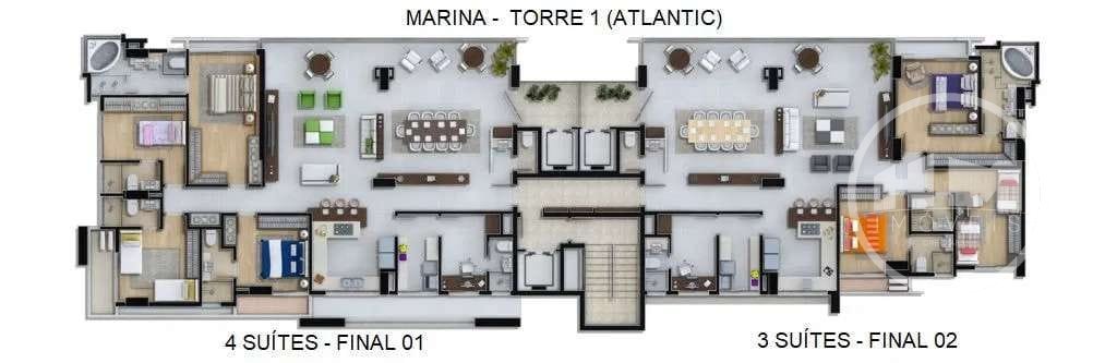 Apartamento duplex com 04 suítes no Centro do Balneário à venda! - 04 suítes - 05 banheiros - Área de Serviço - Hidromassagem - Depósito Individual na Garagem - 04 vagas privativas Empreendimento: - Academia - Bar - Brinquedoteca - Elevador - Espaço gourmet - Espelho d'água - Heliponto - Hidromassagem - Hidromassagem na piscina - Lounge - Medidores de água, luz e gás individuais - Piscina - Piscina adulta - Piscina infantil - Piscina térmica - Playground - Sala de jogos - Salão de festas - Sauna - Solarium - Marina Privativa - Vagas molhadas e secas - Vagas para embarcações - Heliponto Diurno e Noturno - Ofurôs com vista para o rio - Cineminha - Jardim Europeu - Clube do Wisky - Clube da cerveja - Boate - Espaço Beauty - Ofurôs com vista para o rio