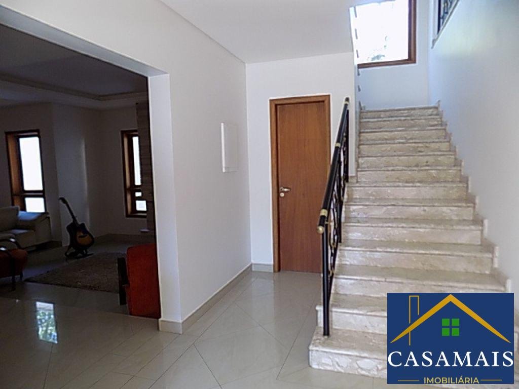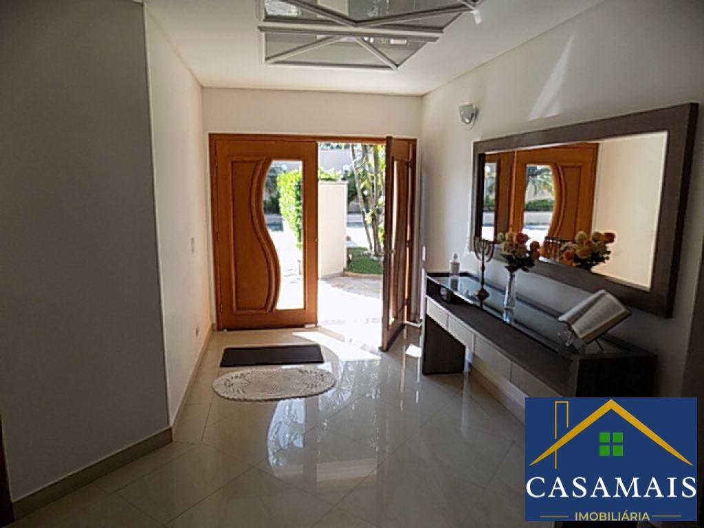 Excelente casa com varanda ampla, 4 suítes, hidro, armário, salas amplas, sala de estar, jantar e lareira, escritório planejado. Lavabo, cozinha planejada, copa, lavanderia, suíte de serviços, salão de festas/academia, vestiário, espaço gourmet completo com depósito, com churrasqueira, forno de pizza, fogão a lenha, pia, belo quintal, piscina com cascata, spa, espaço para sauna. Localização privilegiada dentro do condomínio e terreno totalmente plano. Estuda permutas por Granja Viana e apartamento em SP. Venha conhecer este lindo imóvel.