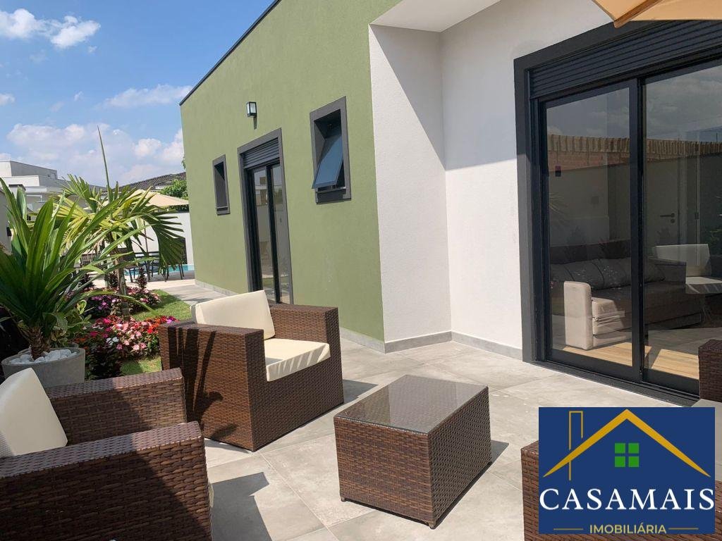 Magnífica casa à venda, recém construída, excelente acabamento com 4 dormitórios, todos eles suítes com armários planejados, um deles suíte master com closet e banheira de hidromassagem, ar condicionado em todos os ambientes, sala de estar com 4 ambientes integrados, hall de entrada, sala de estar, sala de jantar, cozinha e salão de jogos. Lavabo, sauna, área de lazer com jardim de inverno, piscina com spa. Condomínio com ampla infraestrutura, 2 quadras de tênis, quadra poliesportiva, salão de jogos, salão de festas, brinquedoteca, playground, campo de futebol, academias, restaurante, pista de cooper e futura quadra de beach tennis. Agende sua visita!