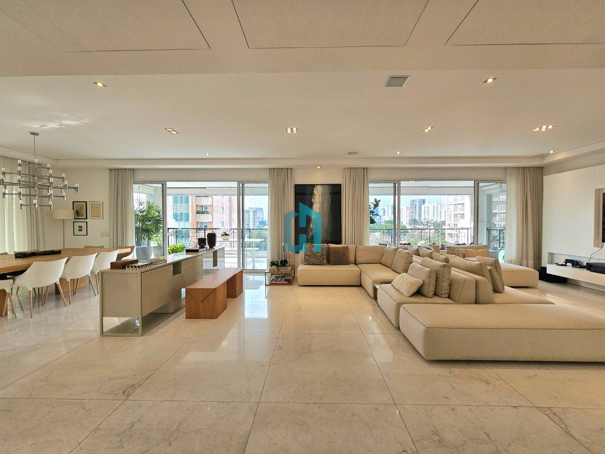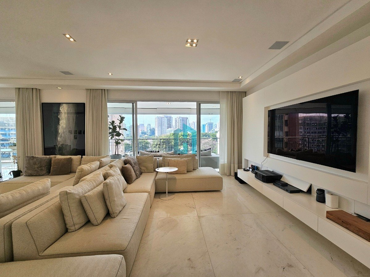 Apartamento à Venda Moema (fora de rota) 400 m² - Varanda Gourmet - 4 suítes - 5 vagas Logo na chegada, o hall social já antecipa o clima do apartamento: elegante, bem resolvido e marcado por proporções generosas em seus 400 m² e pé-direito alto em todos os ambientes. O acesso é feito por dois elevadores sociais, que levam a um hall com porta de correr que se abre integralmente para o living, quase como se o hall fizesse parte da sala. A área social tem piso em mármore, integração entre os ambientes e sistema de som e automação de iluminação. A varanda em L percorre toda a extensão da sala, conectando o living, a sala de jantar e o espaço gourmet, que também se abre para a sala de almoço. Na ala íntima, quatro suítes com piso em madeira e marcenaria de qualidade. Banheiros com aquecimento de piso, desembaçador de espelho e revestidos em mármore, mantendo a linguagem do projeto. Cozinha e lavanderia com armários, além de despensa, quarto e banheiro de serviço. O edifício tem fachada neoclássica, está fora de rota e oferece estrutura de lazer com: piscina coberta com raia, academia, sala de massagem e salão de festas. São 05 vagas, sendo uma fechada e um depósito privativo.