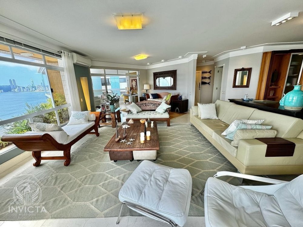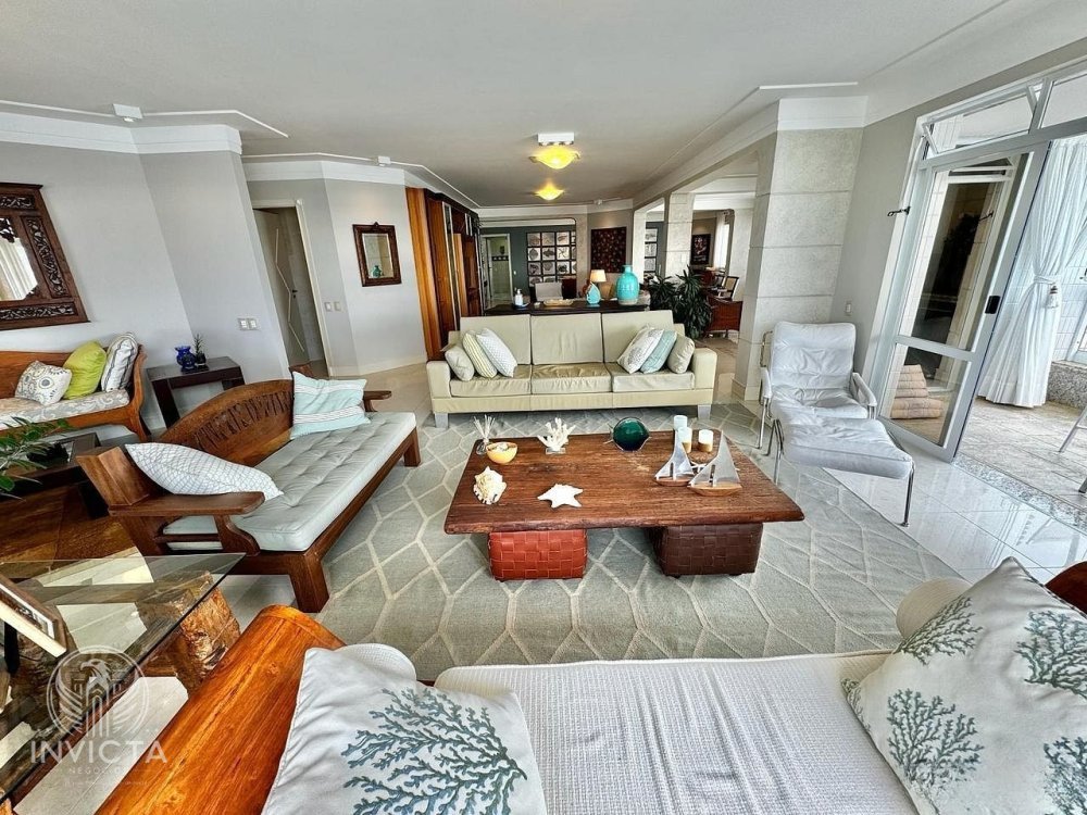 Imagine acordar todos os dias com o som das ondas e uma vista deslumbrante do mar. Este apartamento foi projetado para oferecer a você e sua família o melhor em conforto e requinte, com ambientes integrados e decoração de alto padrão. A integração das áreas sociais com as sacadas permite desfrutar do visual paradisíaco enquanto relaxa ou recebe convidados. <b>Detalhes do Apartamento</b><br><br> Com <b>373,12 m² de área privativa</b>, este imóvel conta com:<br><br> •<b>04 Suítes amplas</b>, todas com sacada, incluindo uma <b>suíte master</b> com closet e banheira de hidromassagem.<br> •<b>Living integrado</b>, com sala de estar e jantar amplas, perfeito para momentos de convívio e lazer.<br> •<b>Espaço gourmet com churrasqueira à gás</b>, projetado para receber amigos e familiares.<br> •<b>02 Sacadas amplas e envidraçadas</b>, com vistas panorâmicas espetaculares para o mar e a cidade.<br> •<b>Cozinha planejada e equipada</b>, com eletrodomésticos de alta qualidade e móveis sob medida.<br> •<b>Dependência de empregada com banheiro</b>, área de serviço funcional e despensa.<br> •<b>03 vagas privativas de garagem</b> e <b>02 boxes de praia</b> para maior praticidade.<br> •<b>Decoração impecável</b>, com móveis refinados e tons que valorizam a iluminação natural e criam uma atmosfera elegante.<br> <br><br> <b>Espaços Que Impressionam</b> <b>Sala de Estar</b><br><br> A sala é ampla e bem iluminada, decorada com móveis que mesclam conforto e sofisticação. A integração com a sacada oferece um ambiente perfeito para relaxar ou admirar a vista deslumbrante da orla.<br><br> <b>Sacada Gourmet</b><br><br> A sacada é um dos pontos altos do imóvel, com espaço para refeições ao ar livre ou momentos de descontração em um ambiente confortável e com vista privilegiada para o mar.<br><br> <b