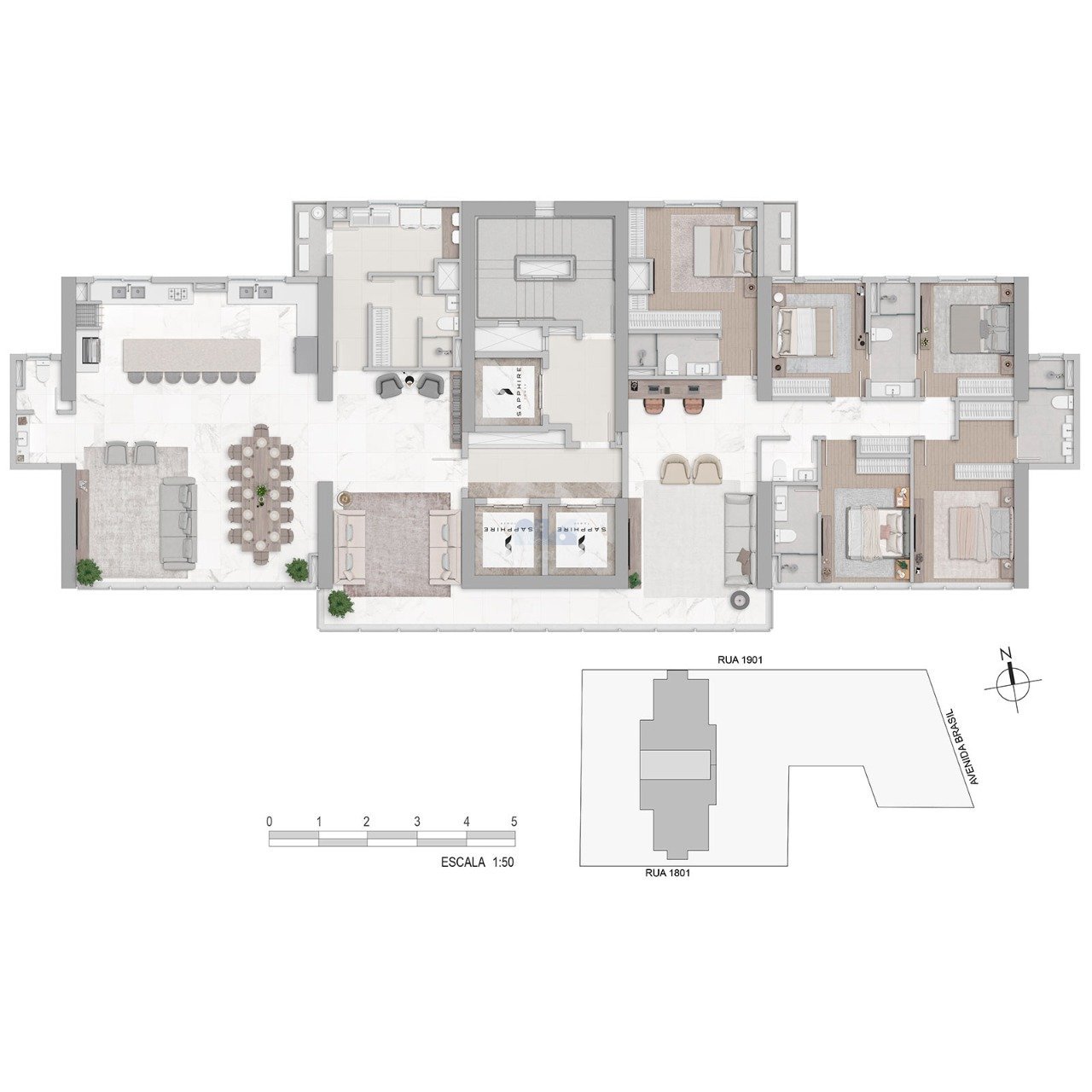 03 a 04 vagas na garagem Mais de 2.300m² de área de lazer Diversas opções de suítes com spa e piscina Ambientes amplos e integrados Pele de vidro Infraestrutura para churrasqueira à carvão Nichos dos banheiros das suítes Piso elevado Divisórias internas em Drywall Estação de recarga veicular por pavimento de garagem Sistema de fachada ventilada Isolamento acústico entre pavimentos, paredes, portas e janelas Áreas comuns decoradas, climatizadas e automatizadas Spa Salão de festas Lounge Espaço gourmet Playground Academia Sauna Bar Piscina CONDIÇÕES DE PAGAMENTO Entrada Semestrais Mensais