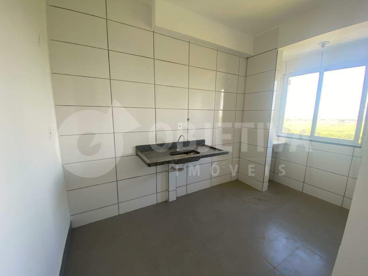 Ótimo apartamento disponível para aluguel no bairro Canaã em Uberlândia. Com 44,61 m² de área privativa, sendo sala em dois ambientes, dois quartos, banheiro social, cozinha integrada com área de serviço e uma vaga de garagem. Cada bloco possui dois elevadores. O condomínio conta com portaria 24 horas, piscina, playground, área gourmet e salão de festas. O valor do aluguel já inclui o condomínio.