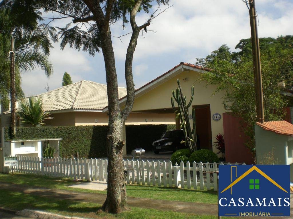 Linda casa térrea em condomínio na Granja Viana. A casa parece que saiu de um conto infantil, com gramado e muito verde, o que deixa o ambiente arejado. Hall de entrada com lavabo, sala de jantar e sala de estar com lareira. Cozinha com despensa integrada à lavanderia. Quarto e banheiro para empregada, com acesso externo. Três dormitórios, sendo uma suíte com portas balcão que dão acesso a uma confortável área externa rodeada de muito verde, churrasqueira e espaço para piscina. Corredor lateral. Casa com excelente localização, rua tranquila e em divisa com área verde preservada. O condomínio é um dos mais tradicionais da Granja Viana, com quadras de tênis, poliesportivas, vôlei, bocha e skate. Muito bem localizado, próximo aos shoppings e supermercados da região, além de colégios e churrascarias.