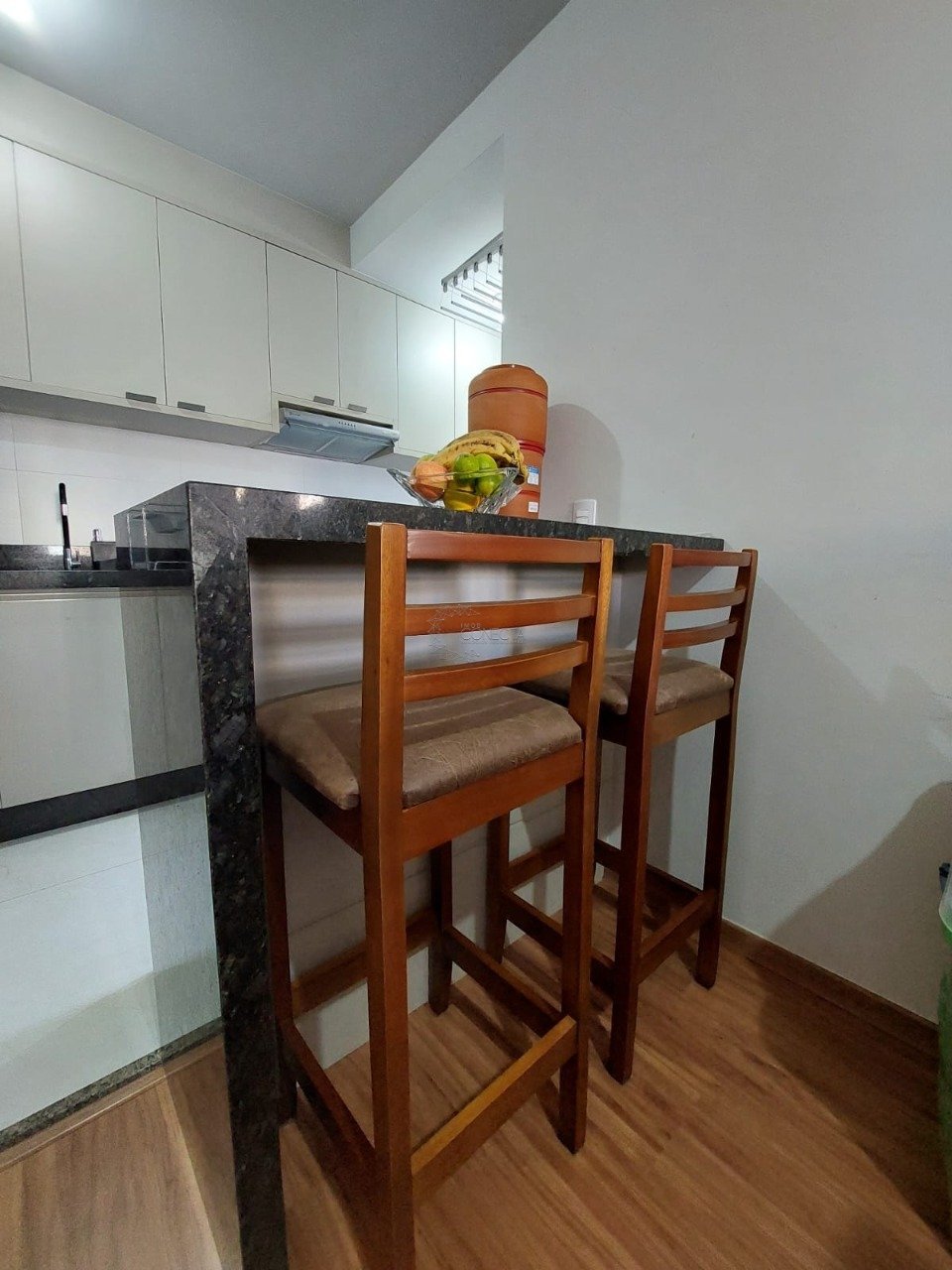 - Cozinha planejada com armários, bancada de granito com pia e tanque em inox embutidos e passa prato com armário de mantimentos e gavetas embaixo. - Ar Condicionado 12.000 BTUs (inverter) no quarto do casal. - Armários na lavanderia para baldes e produtos de limpeza. - Lavanderia com varal de parede individual em alumínio com 8 hastes. - Cozinha com ótimo armário que comporta escada pequena, tábua de passar e aspirador de pó. - Cozinha com porcelanato. - Banheiro planejado (Armário superior + Espelho + Armário inferior), pia de mármore, box até o teto. - Banheiro com piso de porcelanato. - Cozinha e banheiro com impermeabilização do piso para possibilitar lavagem. - Garagem na porta do bloco, já coberta. - Sol da manhã. - Piso laminado nos quartos e sala. - Condomínio baixo, portaria 24h, sistema de tag para acesso de pedestre e veículos.
