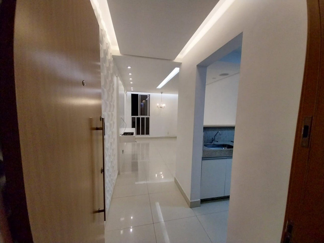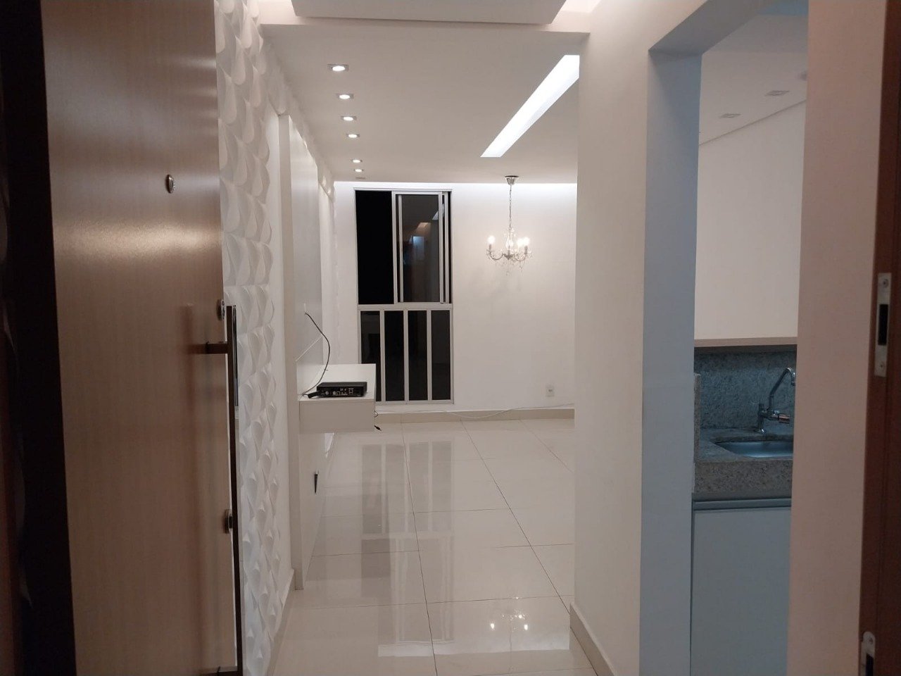 Sala para dois ambientes, com teto rebaixado com projeto de iluminação; 2 quartos com armários sendo um suíte; Banhos social com box, Banho suíte com box e armário; Cozinha conjugada com a área de serviço, com armários; Sala, cozinha e banheiro com piso em porcelanato, quartos com piso em laminado de madeira; 1 vaga de garagem, livre e demarcada; Condomínio bem localizado, próximo a avenidas.