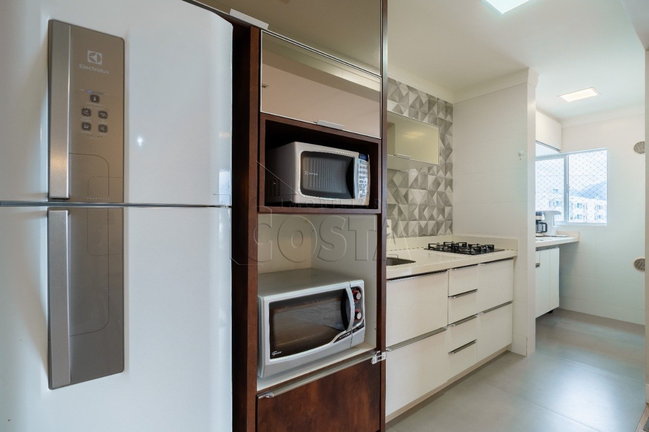 Características do imóvel: 80m² de área privativa com sacada 2 dormitórios (sendo 1 suíte) 1 banheiro social Sala e cozinha integradas Área de serviço Ampla sacada com churrasqueira e pia Medidores individuais de água e luz Vaga de garagem privativa e coberta 2º andar com elevador Semimobiliado, já conta com: Bebedouro Fogão Micro-ondas Geladeira 1 ar-condicionado
