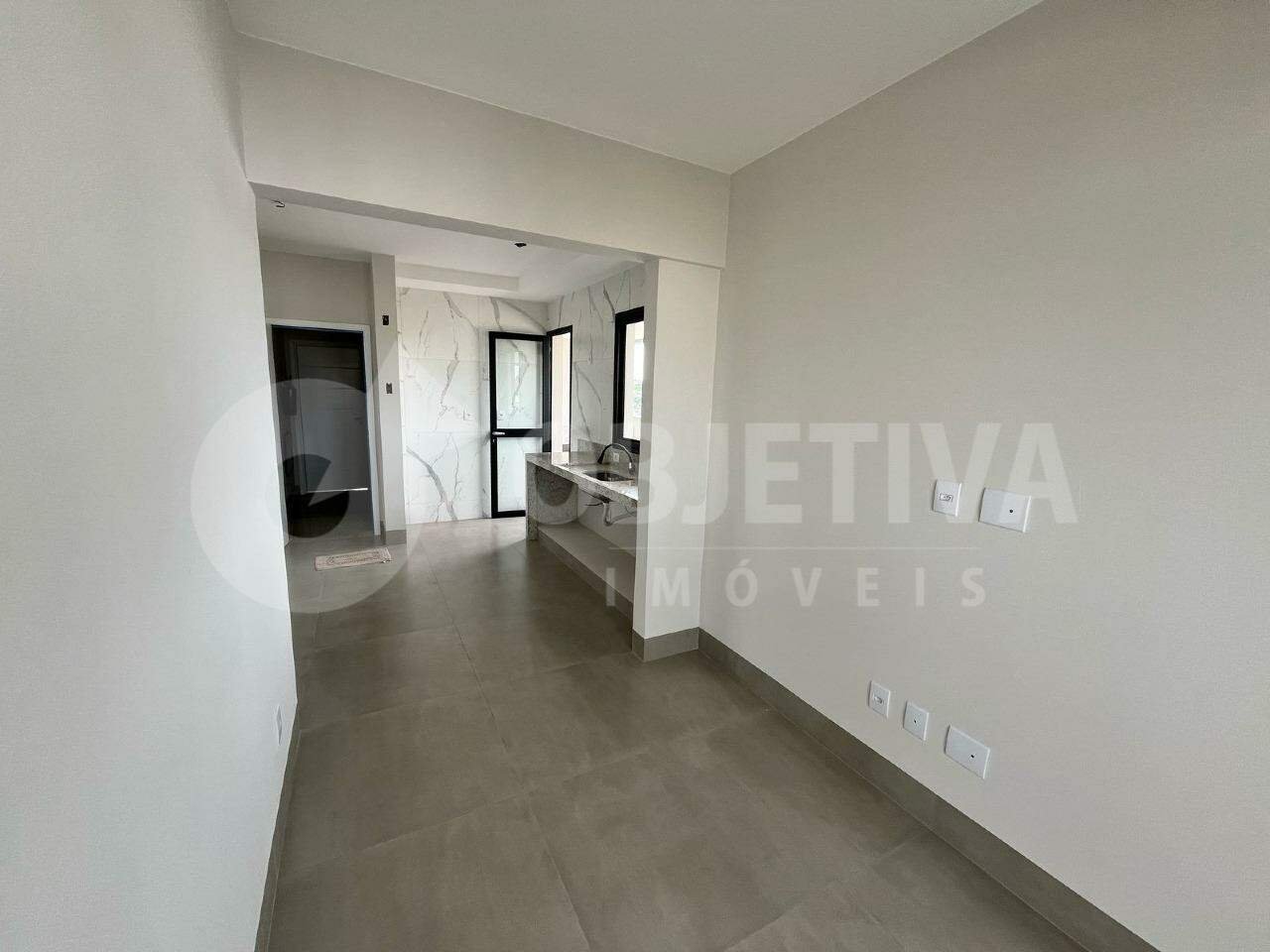Apartamento novo disponível para venda no bairro Santa Mônica em Uberlândia, são 83 m² de área privativa que dispõe de 3 quartos sendo 1 suíte, sala ampla totalmente conjugada com sala de jantar e cozinha, banheiro social, área de serviço, varanda gourmet e 2 vagas de garagem coberta. Apartamento novo, porcelanato grande de cor cimentícia, todo preparado para ar-condicionado e com área técnica para máquinas, tomadas espalhadas por todos os cômodos, banheiros com acabamento em porcelanato até o teto e nichos já prontos. Prédio com infraestrutura completa, área de lazer, academia, área para bicicletário e elevador. Aceita financiamento. Vamos te ajudar na negociação.