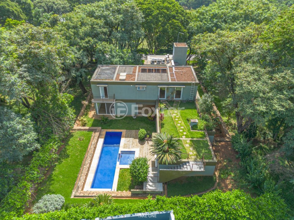 A Residência Modernista A inspiração do projeto é clara. Pode-se ver toques de Lina Bo Bardi por todos os lados. A arquitetura moderna e de traços simples e imponentes tem fortes referências a essa arquiteta ítalo brasileira que é um ícone da história. Linhas retas, limpas e espaços abertos podem ser vistos com facilidade, aqui, onde uma família apaixonada pela natureza veio escrever vários capítulos de sua história. Os vidros têm grande destaque e trazem o verde para dentro da residência, que sempre clara, recebe os tímidos raios de sol pela manhã. No pavimento térreo, a sala ampla se destaca e se fecharmos os olhos, conseguimos imaginar as reuniões de amigos, as crianças correndo e o som melodioso da música tomando conta dos espaços. Tudo isso, com a vista para a piscina e um paisagismo impressionante. A cozinha, muito bem planejada, já viveu dias cheios de aromas, que se misturavam e abriam o apetite de todos por ali. Muito bom lembrar do tempo em que o espaço gourmet tinha cheiro da carne que estava na parrilla, enquanto o seu proprietário puxava lentamente a lenha para alimentar o fogo na proporção certa para a perfeição. Logo ali pertinho, a suíte de hóspedes já estava ocupada e a comemoração iria até o sol se deitar e a lua apresentar-se como protagonista, a embalar o sono de todos. No andar superior, os quartos, preparados para o descanso, com o farfalhar das árvores, dançando serenamente ao toque da brisa fresca. Para ficar ainda melhor, você pode chegar aos dormitórios usando o elevador, que torna tudo mais fácil. Por aqui, os vizinhos são, muitas vezes, os pequenos macaquinhos que vêm em busca das frutinhas que a proprietária sempre lhes ofertou. Ela também, por amar os animais, gosta de, até hoje, vir na casa para poder alimentá-los. Leva, diariamente, ração para os patinhos, que vivem logo ali pertinho, no lago. Facilmente, vê-se as cores da natureza em sua exuberância e ouve-se o canto dos pássaros entoados em doces melodias, que acompanham as histórias de cada um. Uma melhor qualidade de vida para você e sua família é garantida e será entregue juntamente com as chaves desse pedacinho de paraíso, tão perto