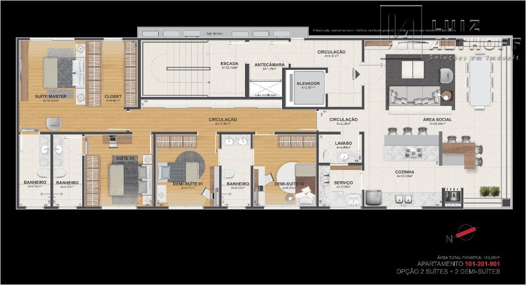 Cód. 2364 . Apartamento único por andar, 4 suítes e mobiliado - Pedra Branca, Palhoça/SC . Com a proposta de apresentar um projeto único, o empreendimento possui como diferenciais apartamentos amplos (1 por andar). . Essa opção possui 4 quartos, sendo 2 suítes (uma com closet) e 2 demi suítes, living integrado com cozinha com churrasqueira a carvão e fechamento de vidro, máximo aproveitamento de iluminação natural, persianas automatizadas nas suítes, espera para ar-condicionado split, acabamento em massa corrida e gesso, piso porcelanato e laminado. . O imóvel possui uma excelente mobília planejada, ar condicionado e esquadrias em PVC. . O projeto foi concebido para pessoas exigentes que buscam um diferencial e alto padrão. São apenas 9 unidades (1 por andar) com ampla área de lazer. . O empreendimento encontra-se localizado na Cidade Universitária Pedra Branca em Palhoça, bairro concebido seguindo as mais modernas e inovadoras práticas de planejamento e sustentabilidade, prezando pelo equilíbrio entre a ocupação urbana, lazer e respeito pelas pessoas. . Com localização estratégica na Pedra Branca, o imóvel encontra-se a poucos metros da UNISUL e do Passeio Pedra Branca (Shopping a céu aberto), sendo de fácil acesso a restaurantes, supermercado, farmácia e lojas de vários segmentos, além de praças e espaços de lazer.