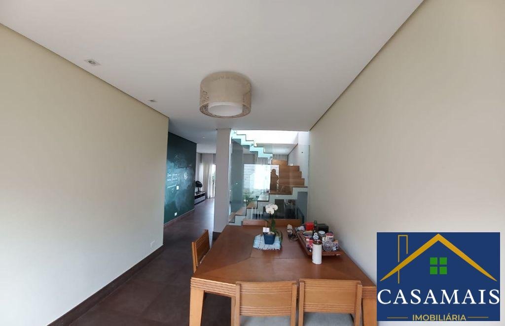 Casa com duas salas bem espaçosas, sendo sala de estar com lareira e sacada e a de jantar com acesso a um quintal. Cozinha com armários planejados e bancada em U. Escada em madeira e guarda corpo de vidro. Tem três dormitórios com armários, sendo o principal bem espaçoso com sacada. Tem 4 vagas sendo duas cobertas. Condomínio localizado no km 26 da Raposo Tavares, próximo aos shoppings com casas em estilo arquitetônico moderno. Lazer completo com piscina, espaço gourmet, salão de festas e muito mais.
