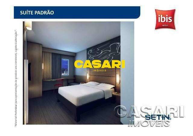 Excelente oportunidade de investimento! Suíte à venda no Hotel, localizado em São Bernardo do Campo, com direito à participação nos lucros gerados pelo sistema de pool hoteleiro. Ideal para quem busca rentabilidade com segurança e praticidade. O hotel oferece estrutura completa: recepção 24h, bar, restaurante, Wi-Fi, é pet friendly e está integrado ao shopping. Localização estratégica, próximo a diversos estabelecimentos e com fácil acesso à rodovia. O imóvel permanece sob administração do hotel, proporcionando retorno mensal sem a necessidade de gestão direta. Investimento inteligente em uma das regiões mais valorizadas da cidade!