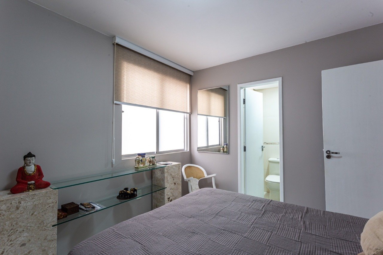 Apartamento com 2 dormitórios, sendo 1 suíte, sala de jantar e estar, ar condicionado, área de serviço, banheiro social, cozinha com copa, entrada para ar split, sacada, semi-mobiliado, vista panorâmica, piso porcelanato, aquecimento de água a gás e 1 vaga de garagem. Condomínio com aquecimento central, elevadores, interfone, portaria e zelador. Próximo a uma loja de departamentos.