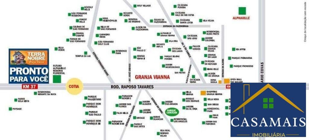 VENHA CONHECER ESTE LINDO LOTE PRONTO PARA CONSTRUIR NO RESIDENCIAL TERRA NOBRE, EM COTIA! Uma ótima oportunidade com 130 m² de terreno. Lugar ideal para realizar seu sonho de morar ou investir. Ótima localização no Km 37 da Rodovia Raposo Tavares em Cotia. Próximo de escolas, hospitais, UPAS e supermercados. Centro Comercial com farmácia, lanchonete, e outros serviços de conveniência. Abastecimento: Sabesp. Esgoto: Sabesp. Num valor negociado de R$ 185.000,00, o interessado pagaria R$ 131.000,00 e ficaria com parcelas a vencer, por contrato. Obs: O valor será de aproximadamente R$ 1.750,00. CONDOMÍNIO Terra Nobre Portaria com controle de acesso e segurança 24 horas. Playground. Academia ao ar livre. Ruas asfaltadas e iluminadas.