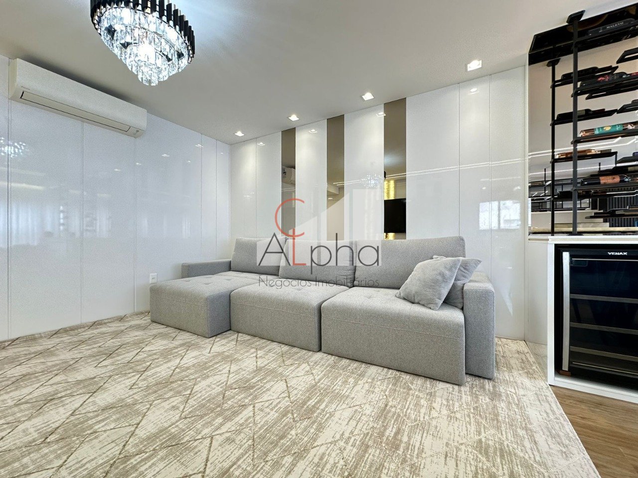 150,00 metros privativos, 280,00 total 4 Dormitórios, sendo todos suítes Sala de TV, sala de Jantar Adega Cozinha Americana com acesso à área de serviço Mobiliada e com planejados Ar condicionado