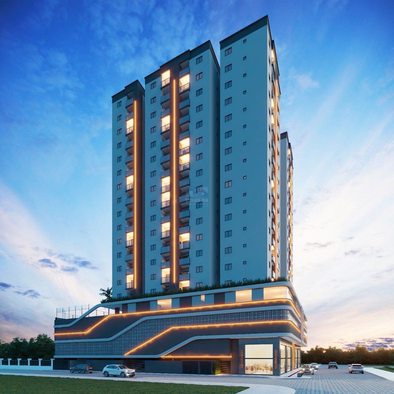 EMPREENDIMENTO: 19 Pavimentos 90 Apartamentos. 6 Aptos por andar. 2 Elevadores. Medidor de Gás individual Medidor de Água individual Vaga de Garagem privativa. 04 salas comerciais com pé direito duplo hall mini market reconhecimento facial lobby coworking LAZER EM 2.000M²: salão de festa espaço gourmet externo sala game sala de jogos brinquedoteca área coberta playground quadra pádel academia sauna spa espaço beleza sala de massagem pet care piscina adulto e infantil bar molhado pista de cooper espaço pet APARTAMENTO: 02 dormitórios 01 banheiro sacada com churrasqueira living
