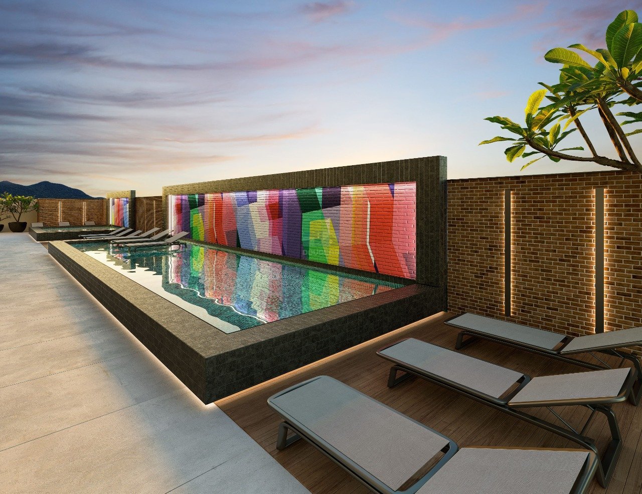 APARTAMENTO 02 Dormitórios, sendo 01 Suíte Living integrado Sacada com churrasqueira à carvão Banheiro social 01 Vaga de garagem Área privativa de 69,35m² ÁREA DE LAZER Lazer com 757m² Piscina adulto e infantil Churrasqueira externa Playground Academia Salão de festas Brinquedoteca Sala de jogos EMPREENDIMENTO 21 Pavimentos 05 Apartamentos por andar 02 Elevadores Hall de entrada mobiliado e decorado Sistema drywall Piso porcelanato nas áreas comuns Piso laminado nas suítes Forro de gesso
