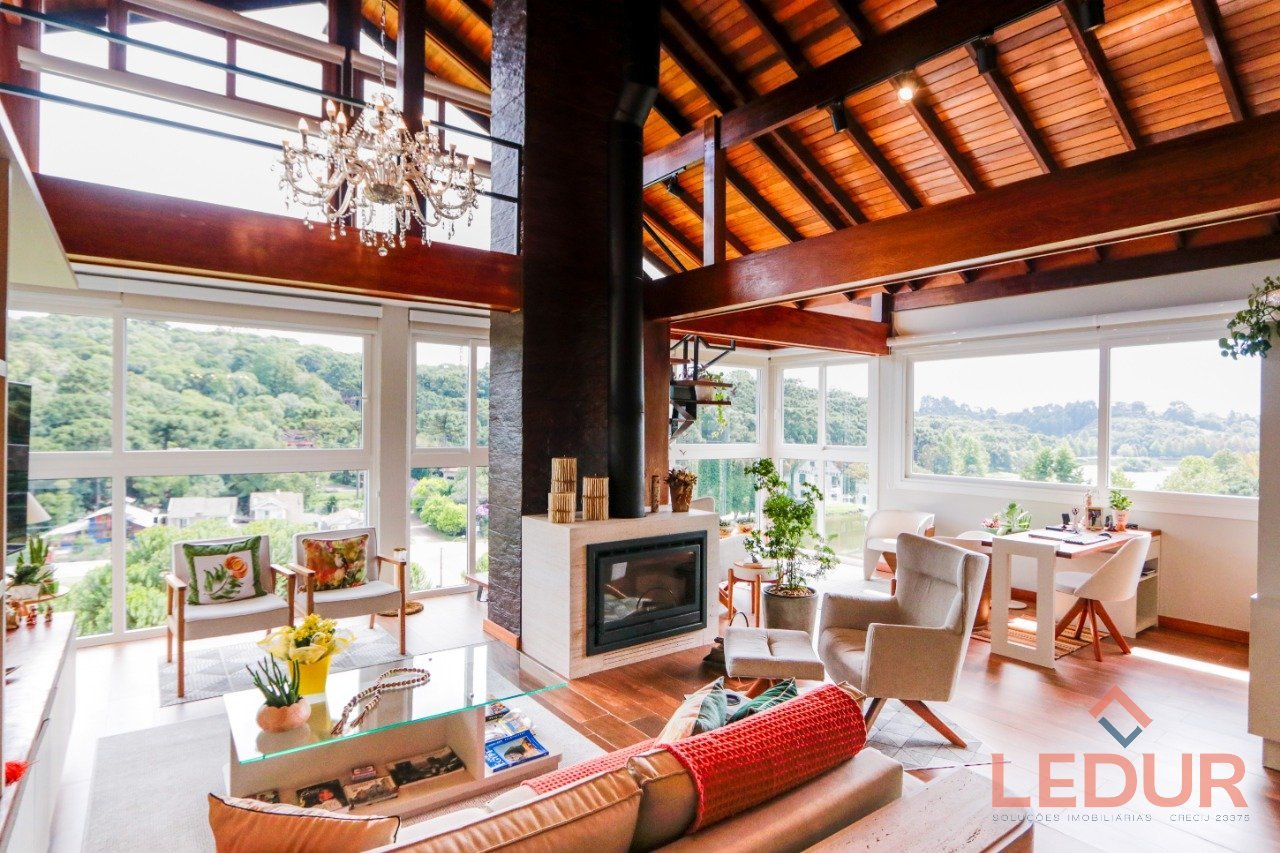 Uma das mais belas coberturas da região, com 170 m², três suítes e vista total do lago, imóvel único! Três suítes com sacada, sala de estar/jantar, cozinha, mezanino e lavabo. Imóvel com água quente, Split em todas as peças, totalmente mobiliado e decorado, lareira canadense, aberturas em PVC, Cortinas Sun Scren, Gás central e elevador panorâmico. Amplo jardim com mata nativa nas margens do lago com 3 vagas de garagem (duas cobertas e uma não). Agende sua visita.