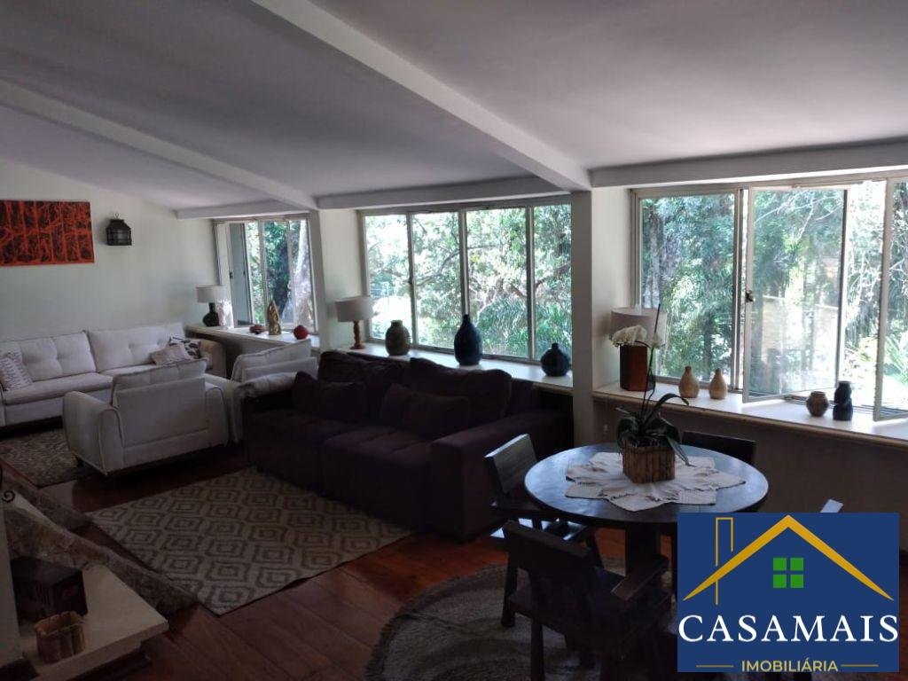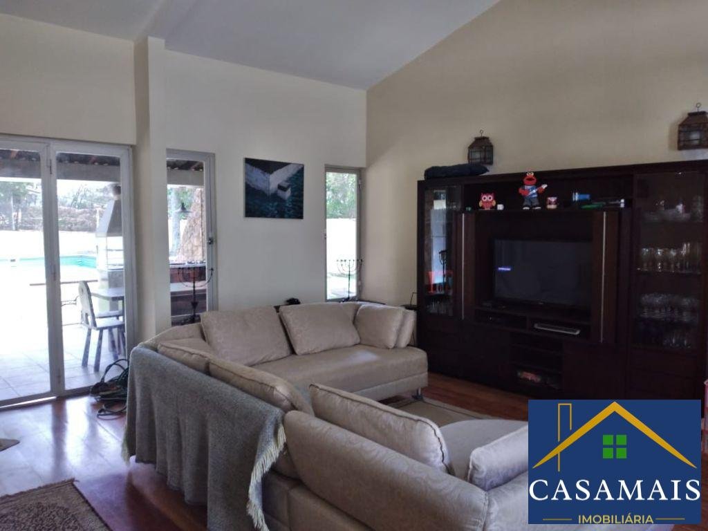 4 dormitórios e 2 suítes, piso de madeira nos quartos e na sala, quarto de empregada com banheiro na parte de fora da casa, com área de serviço externa, canil, piscina, churrasqueira e lareira, 4 vagas de garagem.