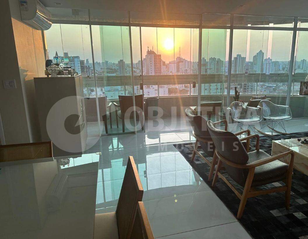 Belíssima Cobertura Duplex, 300m², 05 suítes (sendo Suite Master com TV embutida na porta do armário, cabeceira estofada; Closet amplo com armários com portas de correr e espelhos; Banheiro amplo com pia e torneira importados, banheira dupla com jatos, cromoterapia e aquecimento) 04 vagas de garagem para carros grandes. Sala de estar ampla em vários ambientes com vista maravilhosa e persianas automáticas. Sala de jantar para mesa grande. - Lavabo com cuba assinada. Sala de TV na área íntima, em dois ambientes, com lindo painel e vista espetacular. Mezanino com pé direito duplo, escada em pedra, guarda corpo em vidro transparente, corrimão duplo metálico e persianas automáticas. Escritório com mesa grande, armários com portas de vidro e bebedouro. Cozinha completa com vários armários, eletros de luxo embutidos e bancadas em pedra sofisticada. Copa com balcão e ricas bancadas em pedra e armários. Sacada fechada com cortina de vidros, voltada para o sol da manhã (vista livre com nascer do sol espetacular), com hortinha vertical com irrigação automática. Área Gourmet próxima à cozinha, com balcão e pia, churrasqueira grande, cooktop, armários e portas de vidro de correr. Terraço amplo na área externa com Spa para 4 pessoas (com jatos, cromoterapia, ozonioterapia, aquecimento, air blower e tampa térmica), Sauna a vapor e Ducha aquecida. Área de serviço ampla com banheiro, lavanderia, varal e armários. Armário box enorme de 8 portas na área externa da cobertura. Elevadores com acesso aos 2 pisos. Ar condicionado em todas as 5 suítes, sala de estar, sala de TV e escritório. Sistema de monitoramento completo com câmeras. Sistema de som com telão embutido e caixas de som embutidas na área social e gourmet. Projeto de iluminação sofisticado. Cabeamento de internet com pontos. Hall social exclusivo da Cobertura com elevador social com liberação por senha e fechadura automática. Porcelanato. Cobertura recém reformada, com projeto de decoração sofisticado, rica em marcenaria diferenciada e todos os acabamentos de luxo. Esta Cobertura Duplex é a única cobertura de um dos edifícios mais