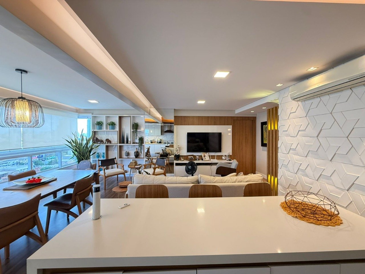 Apartamento de alto padrão, composto por 03 suítes amplas e lavabo, totalmente climatizado e projetado para oferecer conforto e sofisticação em cada ambiente. Os banheiros contam com box blindex, enquanto a sala apresenta um elegante revestimento, harmonizando perfeitamente com a varanda integrada, que amplia a sensação de espaço e luminosidade. A área social se destaca pela bancada gourmet em mármore branco, ideal para experiências gastronômicas, e pela cozinha completa em eletrodomésticos, acompanhada de armários planejados de alto padrão em todo o imóvel. O piso em porcelanato reforça o acabamento refinado e contemporâneo. O empreendimento oferece uma estrutura de lazer completa, com academia, piscina, solarium, área gourmet, espaço churrasqueira, salão de festas, playground e mini-mercado, proporcionando comodidade e bem-estar em um só lugar. Venha conhecer este imóvel excepcional.
