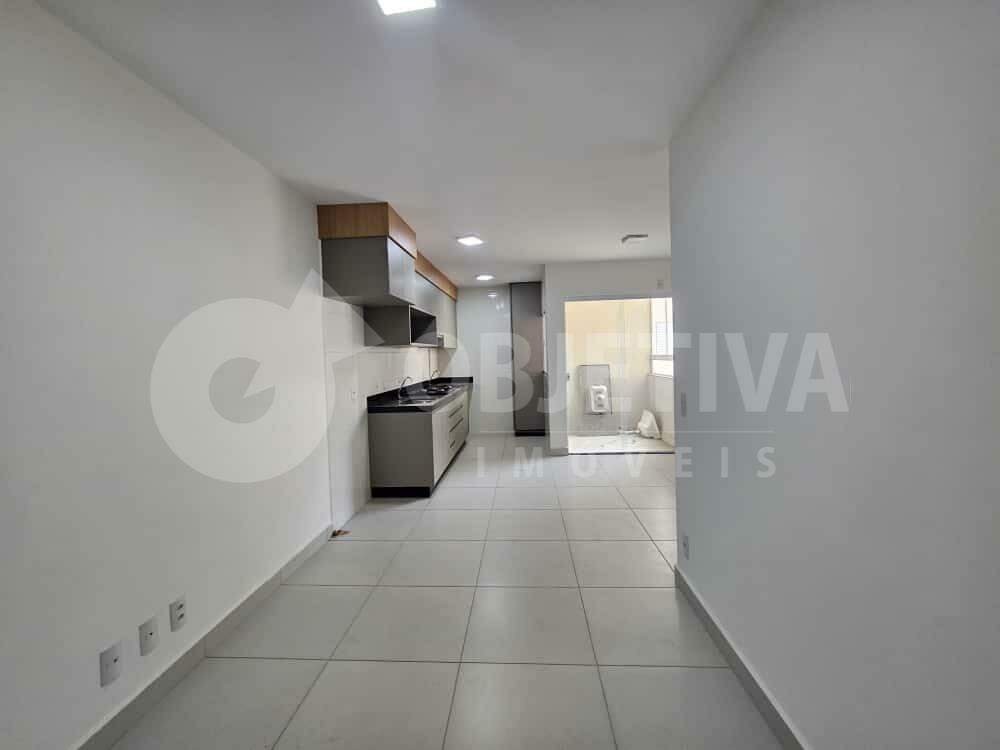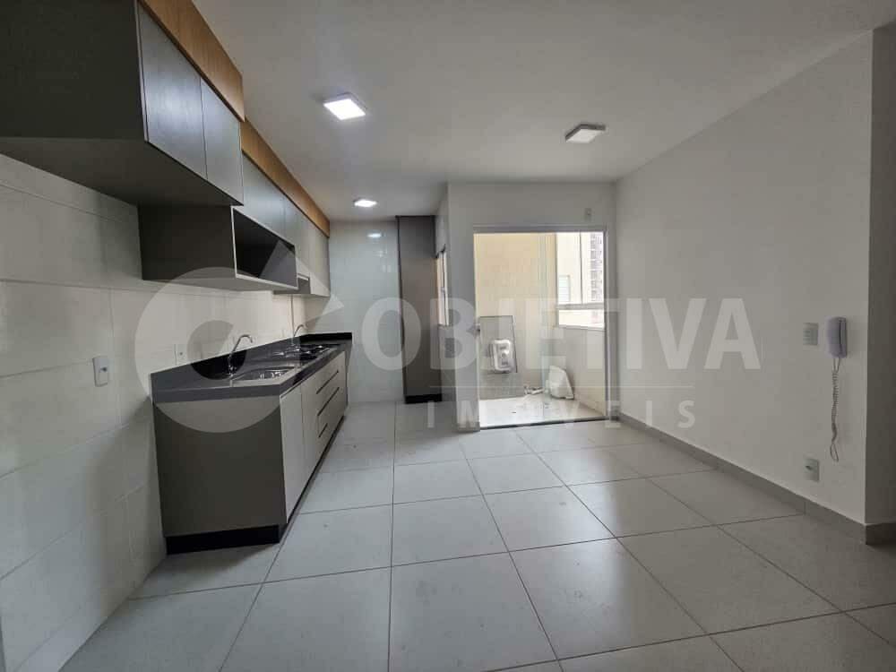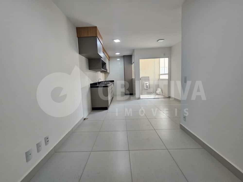 Apartamento para alugar no bairro Laranjeiras, em Uberlândia. Com 57 metros quadrados, 2 quartos, sendo 1 suíte e 1 vaga de garagem. O imóvel possui sala conjugada com cozinha planejada com armário e fogão cooktop, sacada com linda vista panorâmica, banheiro social, área de serviço, piso em porcelanato e iluminação em LED. O banheiro da suíte conta com armário, box em blindex na cor preta e espelho. Localizado em andar alto, o apartamento oferece conforto e praticidade. O condomínio dispõe de portão eletrônico, interfone, gás canalizado, 2 elevadores, salão de festas, espaço gourmet com churrasqueira a carvão e portaria 24 horas. Imóvel novo, primeira locação.