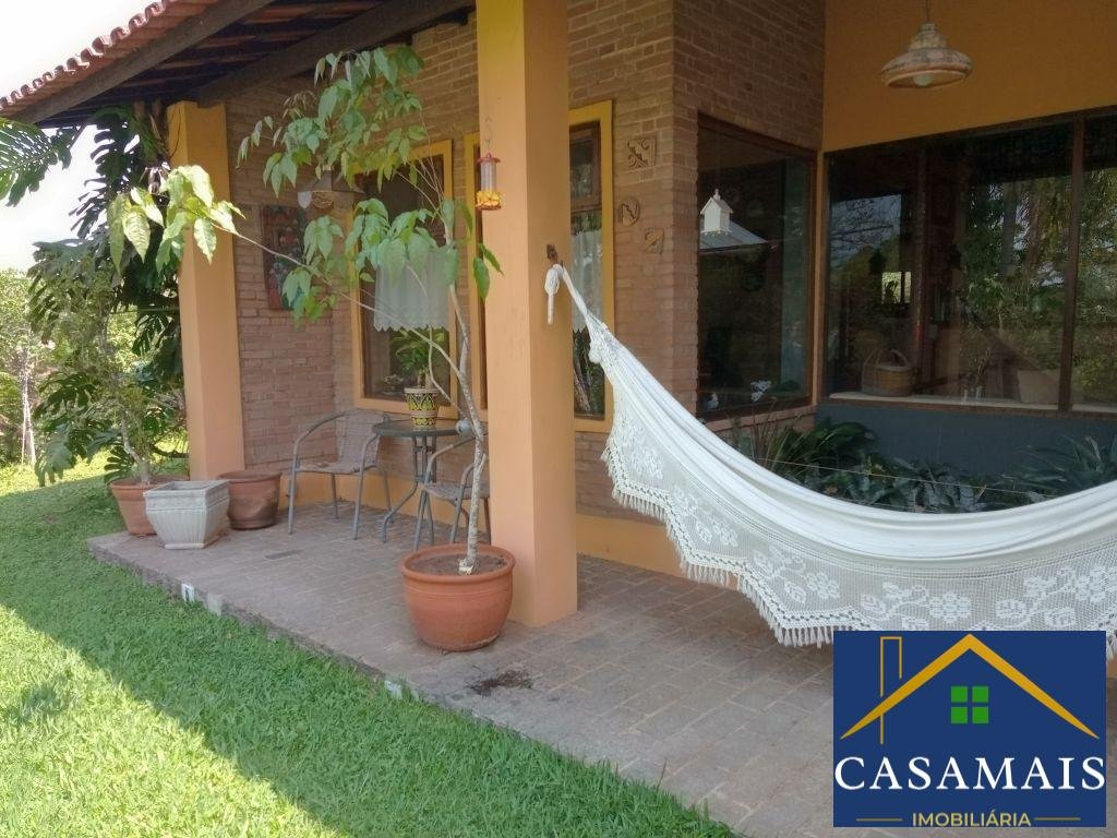 Casa em meio à natureza, com sala para 3 ambientes, lareira, quintal com pomar e piscina, 3 vagas cobertas de garagem com espaço para estacionar mais carros.
