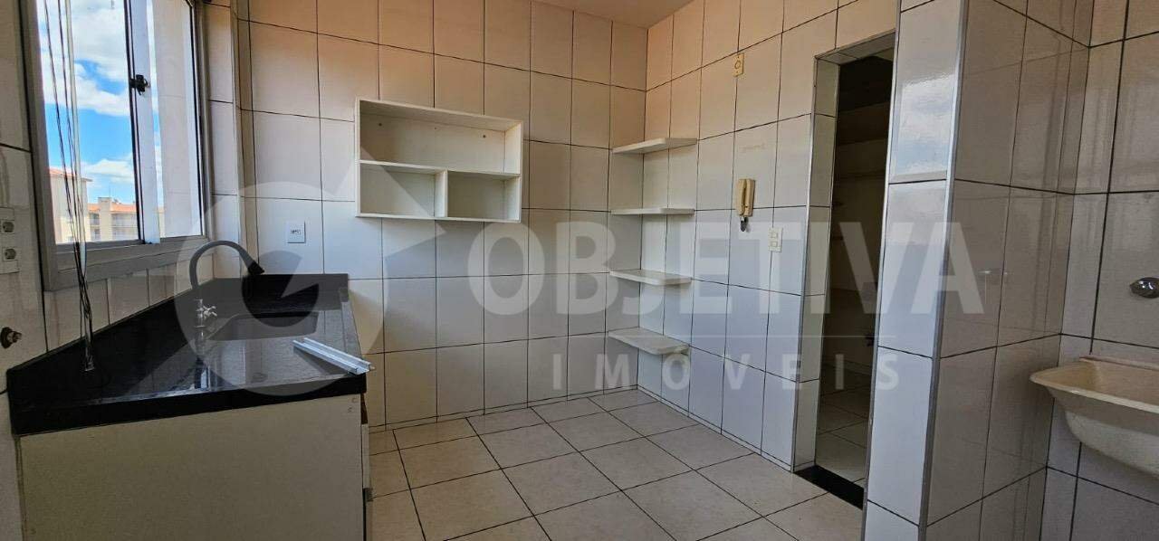 Apartamento no bairro SANTA MÔNICA com 2 quartos sendo 1 suíte com armário embutido (no banheiro tem armário, espelho e box em blindex), banheiro social, sala com sacada, cozinha montada com armário embutido, lavanderia, telas de proteção, garagem para 1 carro coberto. No terceiro andar.