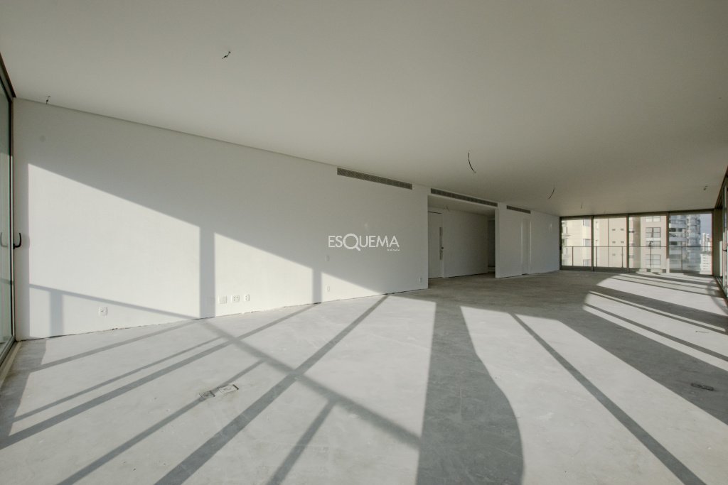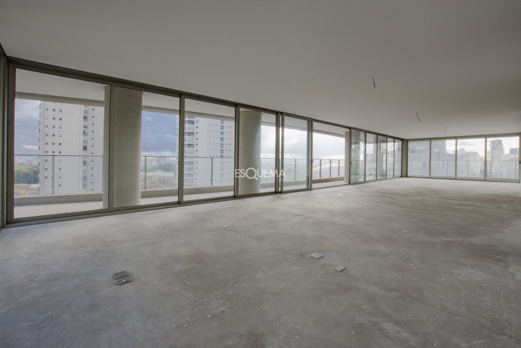 Apartamento com projeto de arquitetura contemporânea, recuado em todos os lados e com paisagismo, a poucos passos do Parque Ibirapuera. Dispõe de uma planta quadrada de 630 m². Conta com uma varanda que circula todo o espaço, proporcionando ótima integração, amplo living para 4 ambientes, sala de jantar, home theater, lavabo e 4 suítes, sendo a máster com closet e banheiro. Os caixilhos são personalizados, projetados em alumínio e vidro, garantindo elegância e luminosidade nos espaços. O condomínio oferece comodidades como bicicletário, gerador para iluminação e elevadores, brinquedoteca, salão de festas, fitness, quadra coberta e sala para motoristas. Dispõe de 7 vagas de garagem.