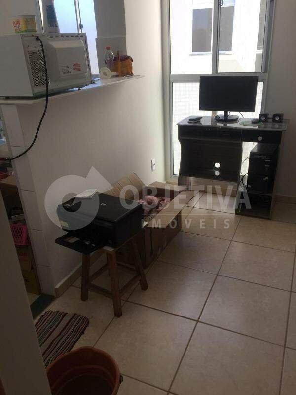 Apartamento disponível para venda no bairro Laranjeiras, em Uberlândia. São 40 m² de área privativa, que dispõe de 2 quartos, cozinha com pia e bancada em granito, sala de TV, banheiro social com box, lavanderia e 1 vaga de garagem descoberta. O condomínio conta com área de lazer completa, piscina, playground, área verde, mini mercado 24 horas, rampas de acesso e portaria 24 horas. O proprietário analisa permuta.