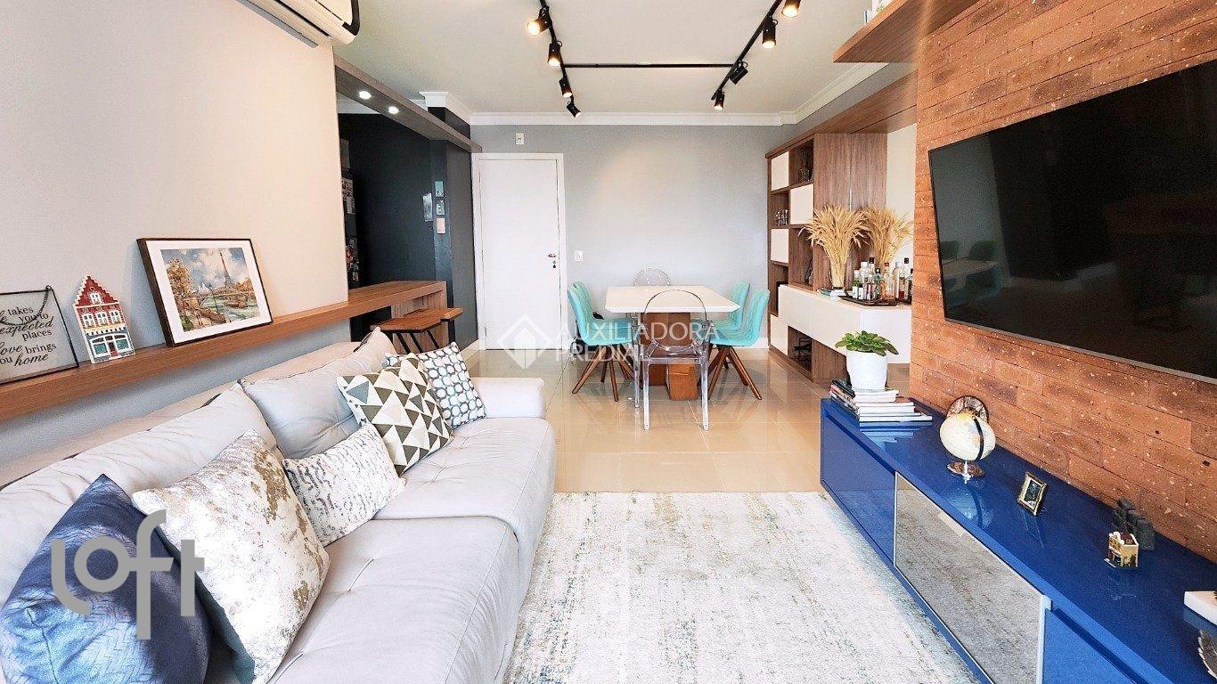 Excelente apartamento, muito bem localizado no bairro Campinas. Conta com sacada com churrasqueira (conteúdo removido e panorâmica), amplo living integrado à cozinha, área de serviço, dois dormitórios (sendo uma suíte) e banheiro social. O imóvel é semimobiliado, com armários planejados, aparador e rack em laca, pedras da cozinha e área de serviço em quartzo, ar-condicionado split, aquecimento a gás, hidrômetro individual e uma vaga de garagem. O condomínio oferece ótima infraestrutura, com elevadores, salão de festas, briquedoteca, bicicletário, além de portaria 24horas. Agende já sua visita e venha conhecer de perto este apartamento que une conforto, praticidade e uma vista incrível!