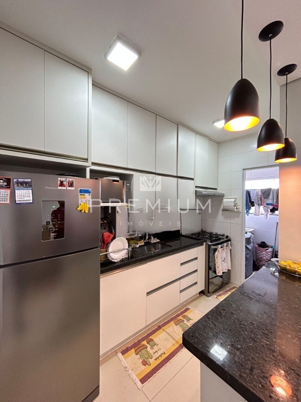 Ótimo apartamento possui 56m² de área privativa, com 2 quartos com armários embutidos, sendo 1 suíte completa com sacada, sala para 2 ambientes com sanca em gesso e iluminação em LED, banheiro social completo, cozinha com móveis planejados, área de serviço separada e 1 vaga de garagem coberta. Condomínio possui elevador, água inclusa e gás encanado, salão de festas e zelador em horário comercial.