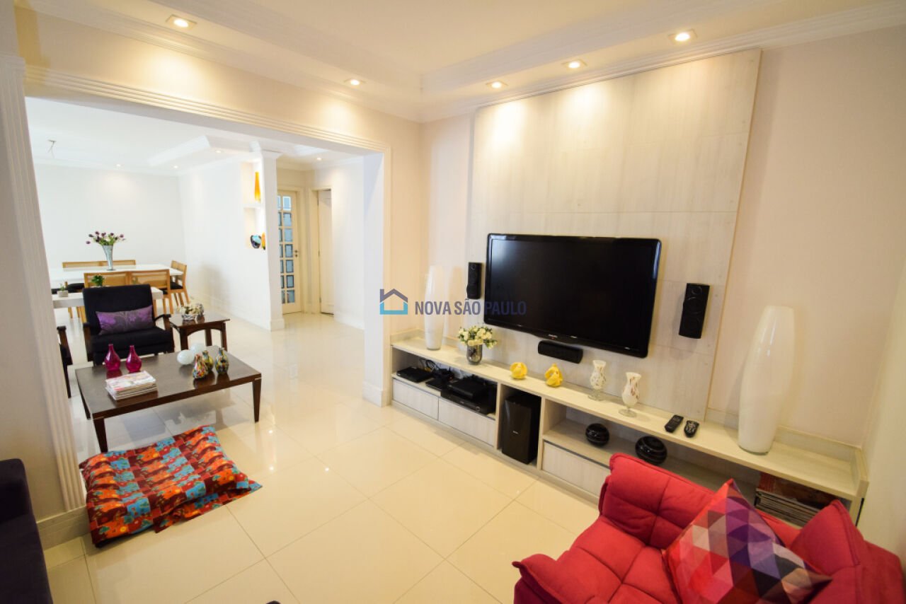 Apartamento amplo, com 134 m², fino acabamento, sala para três ambientes, sala de tv com sacada fechada, entrada social e serviço, sala e corredores com porcelanato, cozinha e área de serviço com granito, repleto de armários. O condomínio possui salão de festas, salão de jogos, playground, jardim e portaria 24 horas. Aceita pet! Localizado em rua arborizada, em região privilegiada e com toda infraestrutura. Próximo ao metrô, shoppings, escolas, bancos e comércio em geral. Oferecemos assessoria gratuita em financiamento imobiliário, orientando o cliente em todo o processo de negociação. Você pode agendar sua visita ou tirar dúvidas. Confira nossas opções.