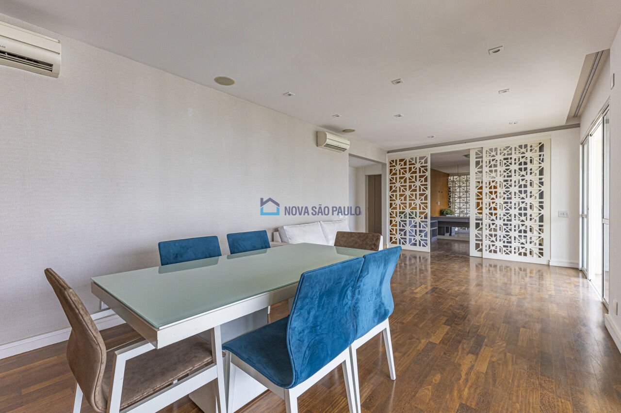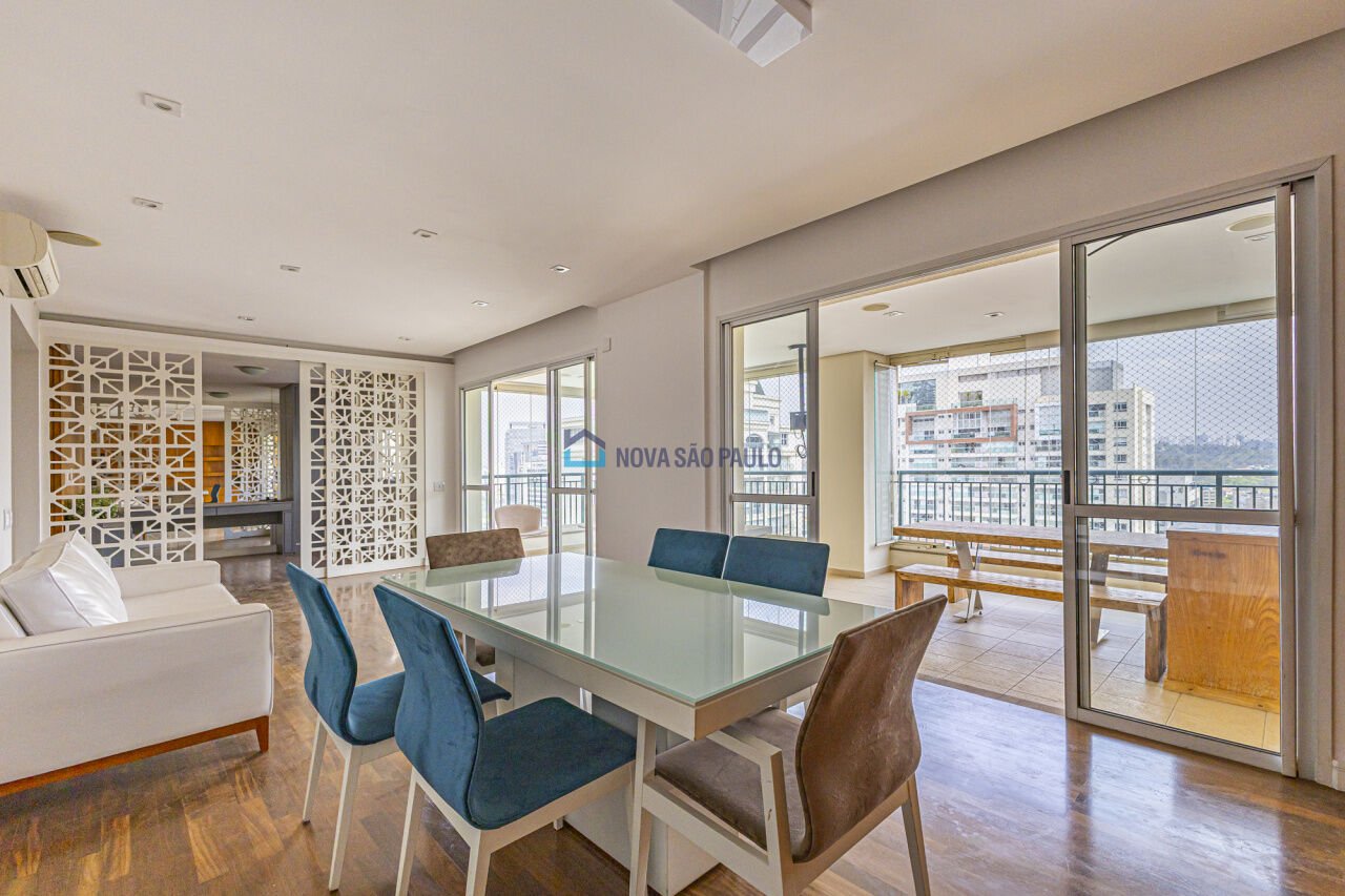 Imóvel amplo e ensolarado para alugar, com 3 dormitórios, sendo todos suítes, e 5 banheiros no total. Este imóvel está semi-mobiliado e é ideal para quem procura conforto e comodidade. Todos os ambientes possuem ar-condicionado. Sacada gourmet com terraço garden, sala espaçosa integrada à varanda, cozinha equipada com fogão, geladeira, micro-ondas, forno elétrico, armários embutidos e bancada para pequenas refeições com banquetas. São três suítes com armários; a suíte master conta com closet e banheira de hidromassagem. Além disso, há um escritório que pode ser revertido em mais um quarto. O condomínio é mais do que completo, um verdadeiro resort com lago de carpas com cascata, academia com instrutor, piscina com raia e aquecida e outra com borda infinita, piscina infantil, brinquedoteca, sauna, Jacuzzi, salão de jogos, salão de festas, playground, quadra de tênis, quadra de squash, quadra poliesportiva, gazebo de leitura e espaço gourmet totalmente equipado com forno de pizza, churrasqueira, fogão, geladeira e freezer. Excelente localização, próximo à Avenida Roque Petroni Júnior e à estação Morumbi, com grande oferta de restaurantes, supermercados, farmácias e escolas. Também próximo a pontos de interesse como UAM - Anhembi Morumbi, Business School São Paulo, Shopping Morumbi, Escola M. Dias e Terminal E.T. Água Espraiada.