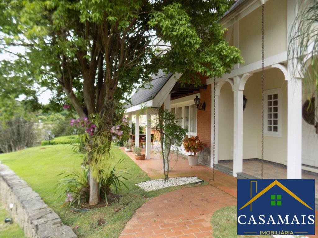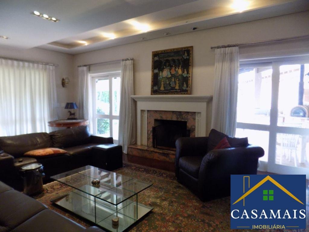 Maravilhosa casa em condomínio de alto padrão. Boa iluminação natural e arejada, linda casa com três salas, sendo sala de estar, sala de jantar e com lareira, pé direito duplo e jardim de inverno. Lavabo. Ampla cozinha com armários planejados e acesso à área de serviço e lavanderia com armários. Quarto de empregada. Quatro suítes bem confortáveis, sendo a suíte máster com closet, banheira hidromassagem e sacada, e outras duas suítes com sacada para a frente da casa. Ótima área de lazer com churrasqueira e piscina ideal para reuniões com amigos e família. O condomínio é um dos mais tradicionais da região e se assemelha a Alphaville pelo projeto urbanístico e suas construções, possui quadras de tênis, poliesportivas, vôlei, bocha e skate. Muito bem localizado, próximo aos shoppings locais e supermercados. Também está próximo a colégios e churrascarias.