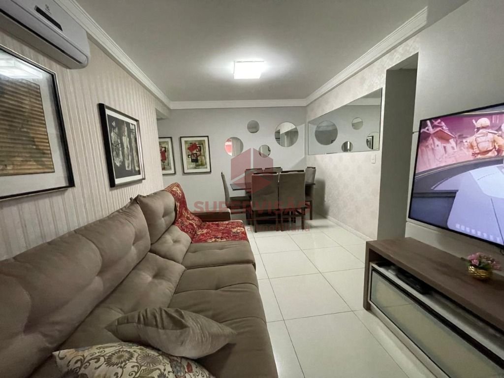 Apartamento à venda em Barreiros, São José/SC. São 82,69m² privativos, distribuídos em 3 quartos, sendo 1 suíte. Conta também com salas de estar e jantar, cozinha, banheiro social e área de serviço. É a escolha perfeita para quem busca conveniência e qualidade de vida. O imóvel mobiliado destaca-se pela ótima localização, e por tudo que o condomínio oferece. Para garantir maior segurança e praticidade para acomodar seu veículo, conta com 2 vagas de garagem cobertas. O condomínio conta com piscina, mini mercado, 4 salões de festas, academia, 2 salas de jogos, cinema, sauna, 4 quiosques, 3 playgrounds, 1 brinquedoteca em cada bloco, sendo 4 blocos e área pet. Localizado a cerca de 800 metros do Shopping Itaguaçu e da Havan São José. Seu entorno contará com facilidades e conveniências como mercados, farmácias, escolas e padarias. Entre em contato e agende uma visita. *Valor sujeito a alteração sem aviso prévio.