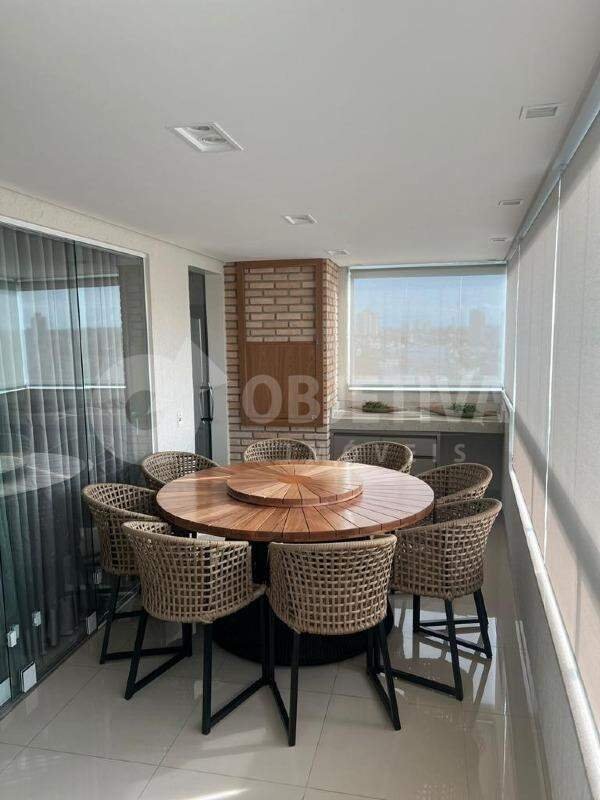 Belíssimo apartamento no bairro Saraiva, muito bem localizado próximo ao Pesque e Pegue. São 116m² de área privativa, dispondo de 3 quartos, sendo uma suíte e duas semi-suítes, lavabo social, sala em dois ambientes, varanda gourmet com churrasqueira, cozinha e área de serviço. Os pisos e revestimentos são em porcelanato, com iluminação em LED e acabamentos em molduras de gesso. Além disso, conta com 2 vagas livres no subsolo, uma ao lado da outra. O prédio possui sistema de câmeras e alarme completo, com acesso por aplicativo.