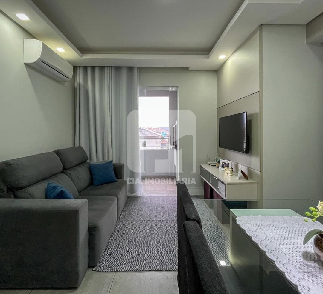 Apartamento com 2 dormitórios, sala ampla para dois ambientes, sacada com churrasqueira a carvão e excelente luminosidade natural. Possui aquecedor à gás e água quente em todas as torneiras. Conta com três vagas de garagem, sendo duas cobertas. O imóvel conta com móveis planejados, oferecendo praticidade e elegância. O condomínio dispõe de elevador e apenas 5 apartamentos por andar, garantindo mais privacidade e conforto. Localização estratégica, a apenas 900m da BR-101, com fácil acesso às principais vias da região. Agende uma visita e venha conhecer!