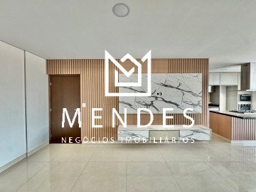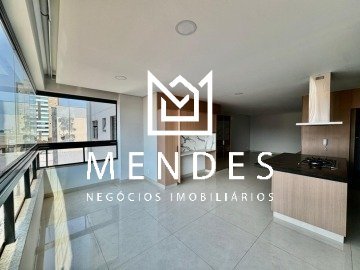 03 suítes, sendo 02 estilo americano, Sala estar/TV, Cozinha com ilha, Sala de jantar, Banheiro Social, Área de serviço/Lavanderia, Ar-condicionado nos quartos, sala, cozinha e sala de jantar, Completo em móveis planejados.