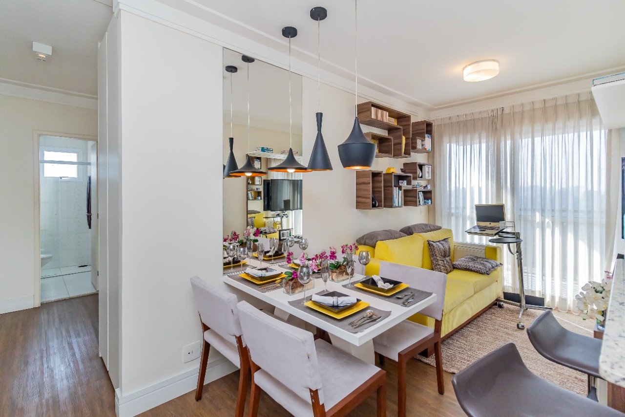 Apartamento decorado, com tudo equipado, pronto para morar, com vista livre, 2 quartos e 1 banheiro, com varanda, lazer com academia, salão de festas e brinquedoteca.
