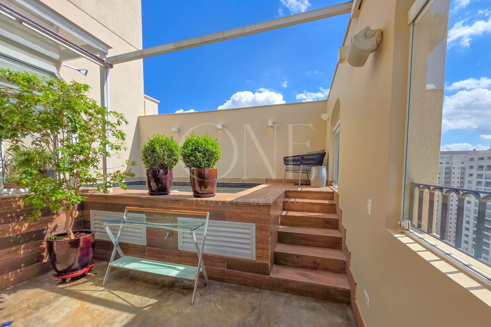 Cobertura assobradada na melhor localização do Campo Belo, com área descoberta, piscina privativa e uma vista espetacular da cidade. A configuração com a área social e a piscina no piso inferior torna os ambientes mais integrados e práticos no dia a dia, além de ampliar a sensação de espaço. As suítes no piso superior garantem a privacidade da área íntima, proporcionando o conforto de uma casa com a segurança de um apartamento. A cobertura oferece um living para até quatro ambientes, lareira, varanda frontal com vista aberta e área externa com piscina e varanda gourmet com teto retrátil e piso em cimento queimado. A cozinha está equipada com eletrodomésticos, todos permanecem no imóvel. A sala de almoço conecta-se à varanda gourmet e a área da piscina. Os acabamentos incluem armários, piso em madeira, ar-condicionados novos nos dormitórios, metais dos banheiros substituídos e pias em silestone. O edifício oferece gerador atendendo todo o apartamento, elevadores social e de serviço com senha e poço artesiano. São 8 vagas de garagem e um depósito privativo de 8,42 m². A fachada neoclássica foi recentemente pintada e o lazer inclui piscina aquecida adulto e infantil, academia equipada, playground, brinquedoteca e salão de festas.