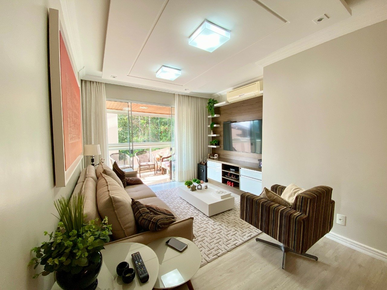 Lindo, clássico e confortável apartamento com varanda, na região de Itaguaçu. 114m² privativos 03 dormitórios sendo 01 suíte Salas de jantar, TV e estar com varanda 02 vagas de garagem coberta, privativa livre Condomínio: salão de festas com churrasqueira, piscina coletiva. Fica no imóvel, ar-condicionado, móveis planejados. O lazer vai das praias ao contato com o verde - Parque de Aventura e Parque do Abraão - e ainda fica a 2 minutos da Via Gastronômica de Coqueiros, com os mais convidativos bares, restaurantes e cafeterias.