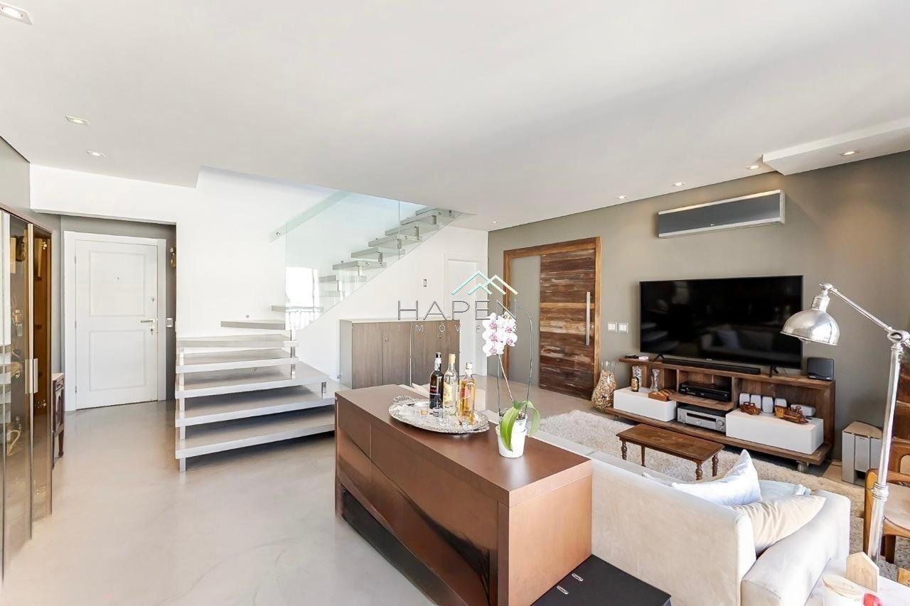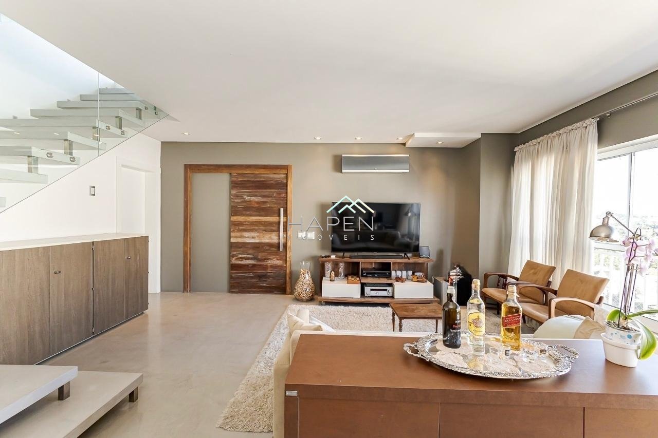 Localizado no Ecoville, uma região valorizada de Curitiba. Um bairro residencial, arborizado, com uma infraestrutura completa, incluindo estabelecimentos comerciais, serviços e áreas de lazer. O imóvel com face norte, tem uma excelente ensolação e ventilação. Com 211,81 m² de área privativa, sendo 153,02 m² de área coberta e 58,79 m² de área descoberta, esta cobertura é ideal. No primeiro piso, conta com ampla sala, adega que pode ser convertido em lavabo, área de serviço. Na área íntima, um roupeiro e duas suítes bem distribuídas garantindo privacidade e comodidade. No pavimento superior, o destaque vai para sala de jantar integrada ao espaço gourmet, com portas de vidro que se abrem para o terraço com pérgula. Conta também com um lavabo, e mais uma suíte exclusiva. Todas as suítes contam com ar-condicionado tanto nos quartos quanto nos banheiros, proporcionando máximo de conforto. O imóvel dispõe também de 3 vagas de garagem. O condomínio oferece infraestrutura completa: portaria 24h, salão gourmet, churrasqueira, piscina aquecida e coberta, playground, brinquedoteca, academia, quadra poliesportiva e uma horta comunitária. Valor e disponibilidade sujeitos a confirmação.