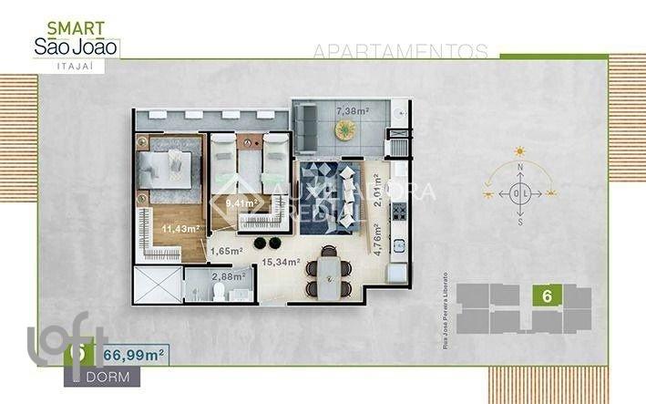 Excelente oportunidade!! Pronto para morar! Apartamento com 2 dormito?rios 1 banheiro, Sala de estar, Sala de Jantar Sacada com churrasqueira 1 vaga de garagem coberta Piso laminado em todo o apartamento Área técnica com porta de vidro. Porta da cozinha de blindex de correr. Fechamento da sacada em reiki. Sem móveis. Lado Norte. Sol o dia todo Este imo?vel proporcionando conforto e praticidade para voce? e sua fami?lia. Ale?m disso, esta? localizado em uma regia?o privilegiada, pro?xima a diversas facilidades como bancos, escolas, faculdades, farma?cias, hospitais, igrejas, padarias, prac?as, rodovias, shopping, supermercados e transporte pu?blico. Se voce? procura um lugar para morar com comodidade e seguranc?a, esta e? a escolha perfeita! A localizac?a?o estrate?gica proporciona facilidade de deslocamento e acesso a diversos servic?os essenciais. Na?o perca esta oportunidade u?nica de adquirir o seu pro?prio apartamento no bairro Sa?o Joa?o em Itajai?-SC. Entre em contato conosco atrave?s do formula?rio disponi?vel no site e agende uma visita para conhecer todos os detalhes deste imo?vel. Invista no seu futuro e garanta ja? o seu espac?o neste incri?vel empreendimento. Estamos aguardando o seu contato!