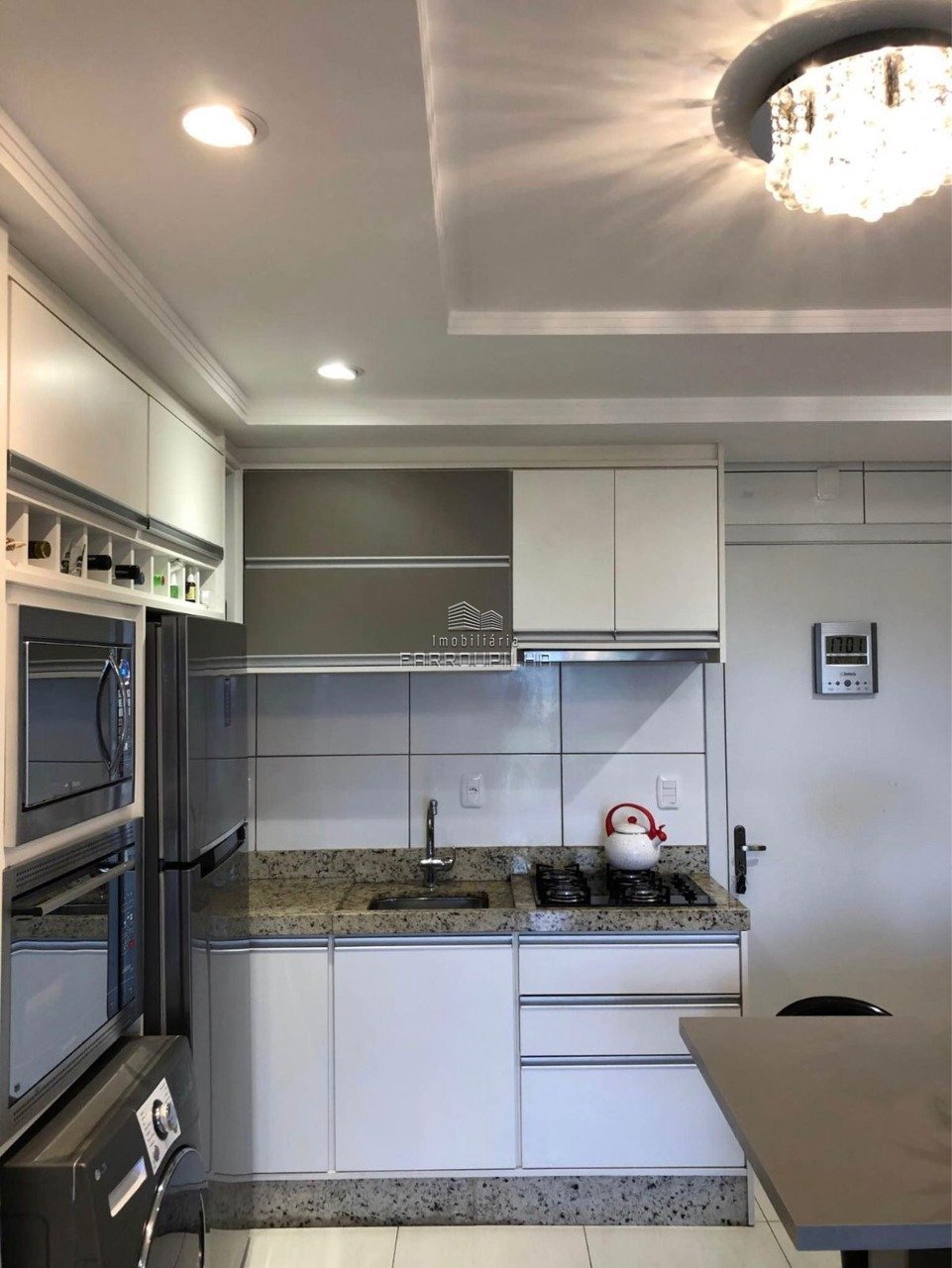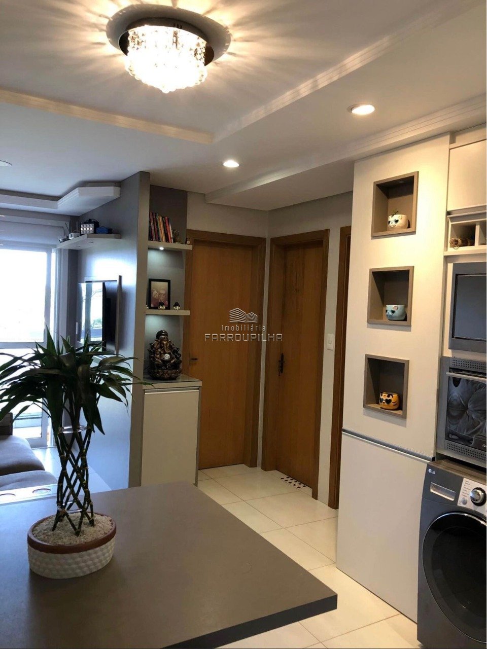 Apartamento semimobiliado com dois dormitórios, sala e cozinha conjugadas, banheiro social, sacada fechada e uma vaga de garagem coberta. Rebaixe em gesso e piso porcelanato em todo o apartamento. Ficam móveis sob medida da cozinha (com forno elétrico e micro-ondas embutidos), painel de TV da sala, um roupeiro, um ar condicionado, luminárias e lustre. NECESSÁRIO AGENDAR VISITA.