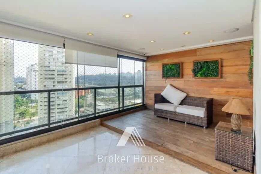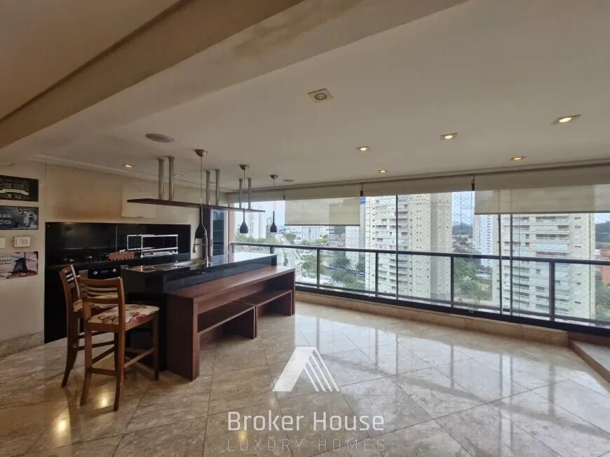 Living foi ampliado e integrado com o terraço gourmet (piso nivelado todo com Mármore Travertino) terraço foi todo modificado (troca da churrasqueira original por pré moldada em Inox) cooktop e forno elétrico embutido no terraço, além dos armários em marcenaria, salinha na varanda com deck de madeira de demolição, prateleiras em madeira de demolição para jardim vertical. 3 suítes, com a possibilidade de reverter para 4 suítes, todas com janela anti-ruído, suíte master com closet, armários sob medida em marcenaria de alta qualidade, banheiro casal com duas pias, e ofurô com hidro! Salinha de tv/brinquedos com quadro negro para crianças, rack sob medida! Lavabo todo em Mármore Travertino. Todos banheiros com pia esculpida no Mármore! Cozinha em marcenaria toda sob medida e mesa embutida. Todo apartamento com telas de proteção e persianas! Quarto de serviço e lavanderia com armários sob medida (marcenaria)! Ar condicionado (5 splits e 3 condensadoras) Iluminação embutida em led, sistema de som ambiente embutido em todo terraço, sala de tv e de estar /Home theater. Depósito privativo e 4 vagas de garagem. O condomínio é um verdadeiro clube, oferecendo assessoria esportiva e lazer completo. São 3 salões de festas, 4 piscinas (duas cobertas e aquecidas), academia de alto padrão com dois andares, sala de ginástica, tatame, sala de massagem, 2 quadras de tênis, quadra poliesportiva, quadra gramada, 2 brinquedotecas, home office, sala de TV, sauna com área de descanso e salão de jogos. Fica a cinco minutos dos Shoppings Morumbi e Market Place.