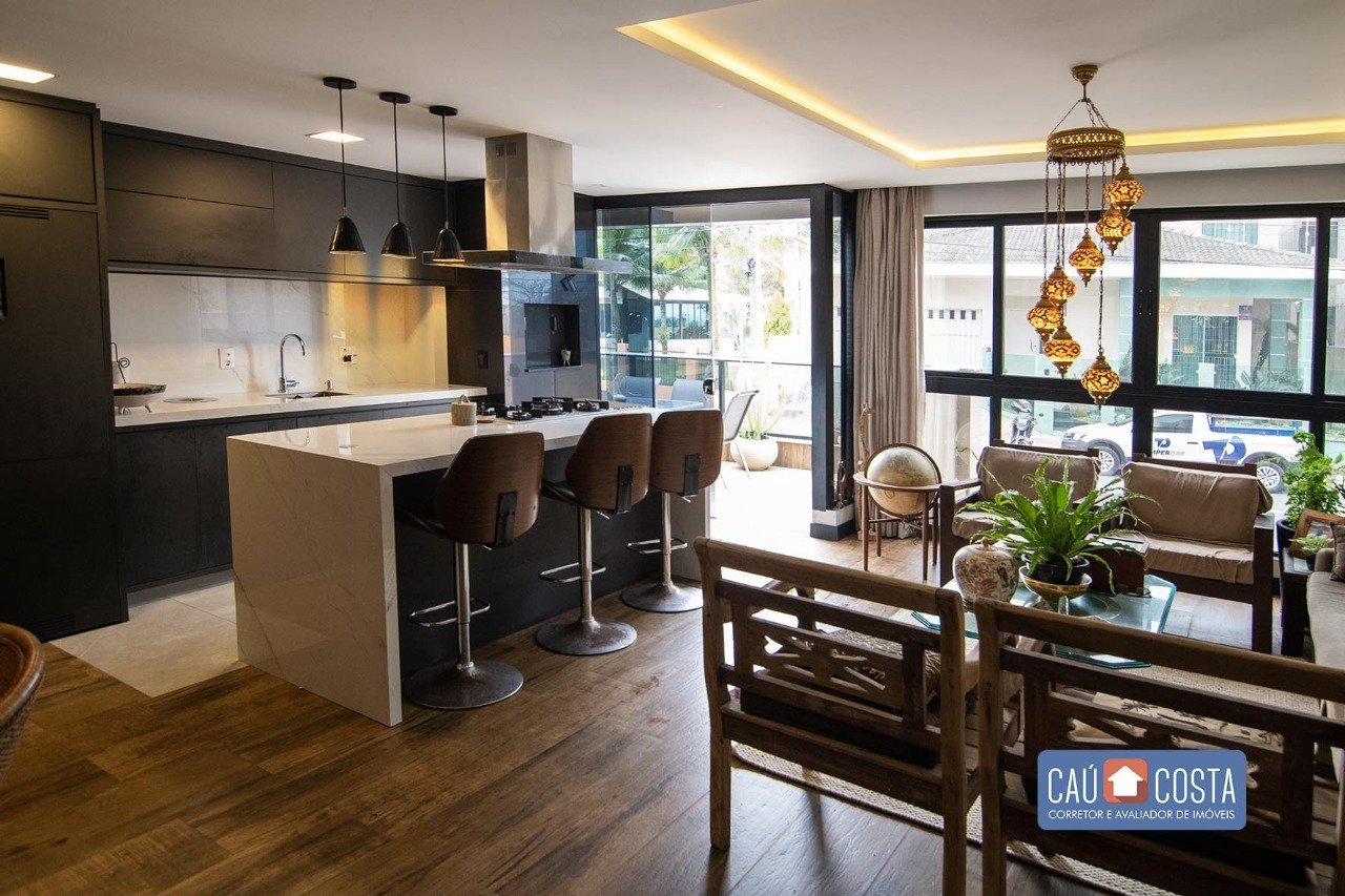 Um lindo e amplo apartamento diferenciado, de alto padrão e com decoração marcante e peculiar. O mesmo possui 3 suítes, 2 varandas (sendo uma de frente para a rua e outra nos fundos) e área de serviço ampla com armários. Em seu acabamento, há teto rebaixado em gesso, piso vinílico em todos os ambientes e iluminação de LED. O empreendimento fica a poucos metros do mar, com uma passagem exclusiva para a areia da praia (rua sem saída). O mesmo conta com duas vagas de garagens independentes.