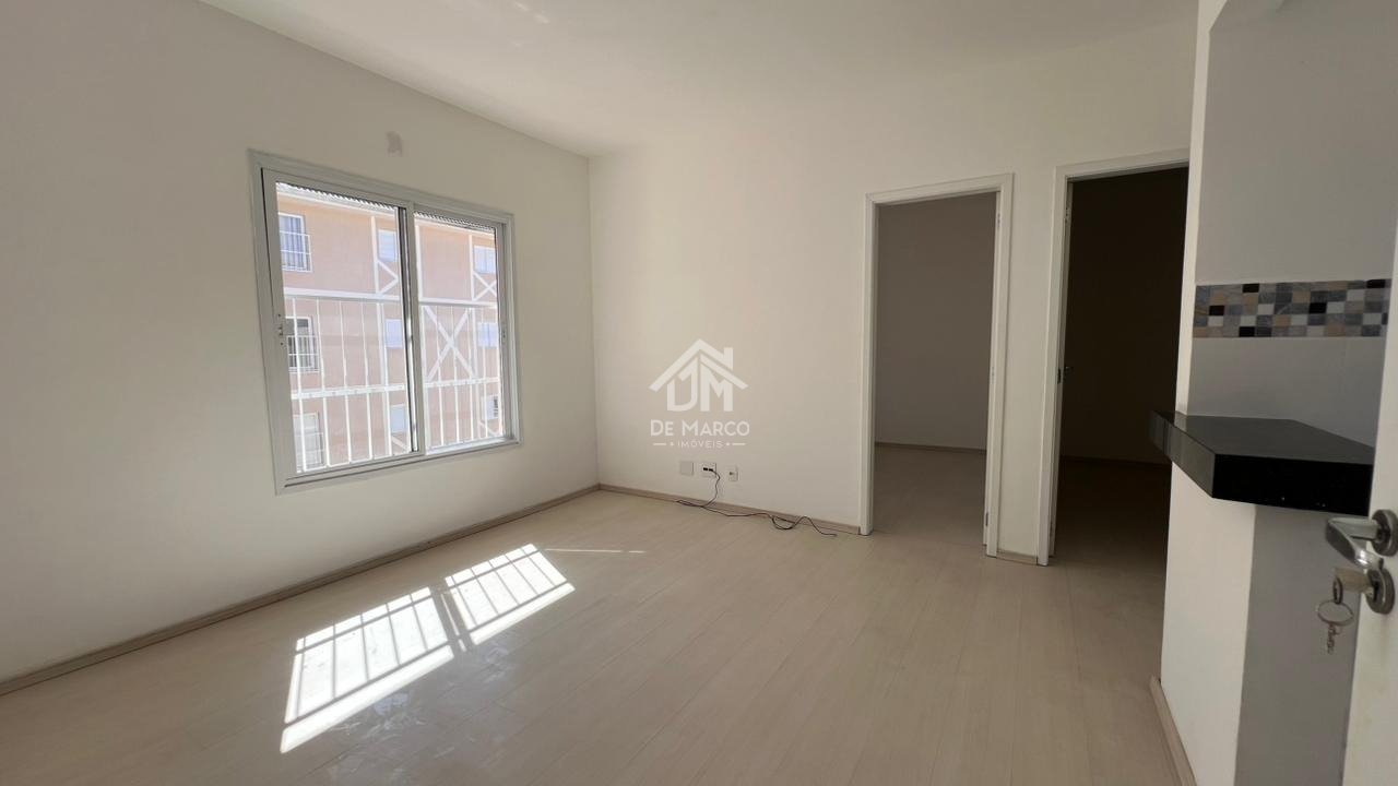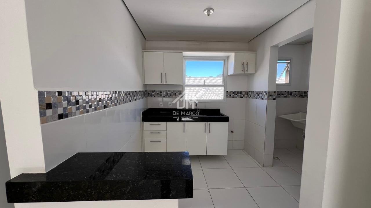 Dispõe de 02 dormitórios, cozinha americana, sala e área de serviço. Essa unidade possui 02 vagas de garagem, sendo uma coberta.