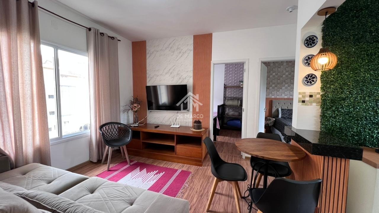 Apartamento cobertura dispõe de 02 dormitórios, cozinha americana, banheiro, sala de jantar, sala de tv, vaga de garagem coberta.