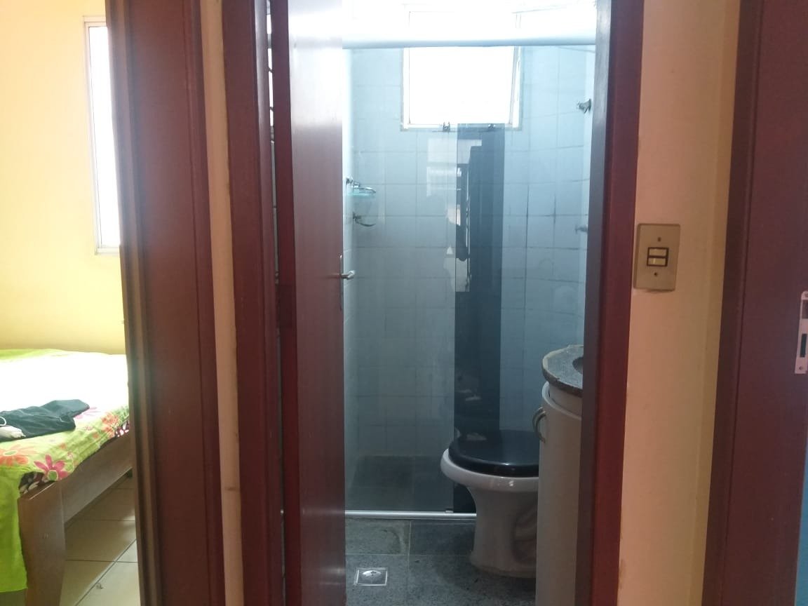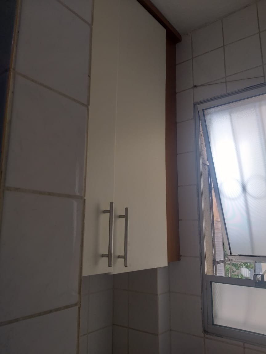 02 quartos (01 com armário embutido) Cozinha com armário 01 banheiro Área de serviço com armário 01 banheiro com armário Não tem elevador, Condomínio com gás e água incluídos.